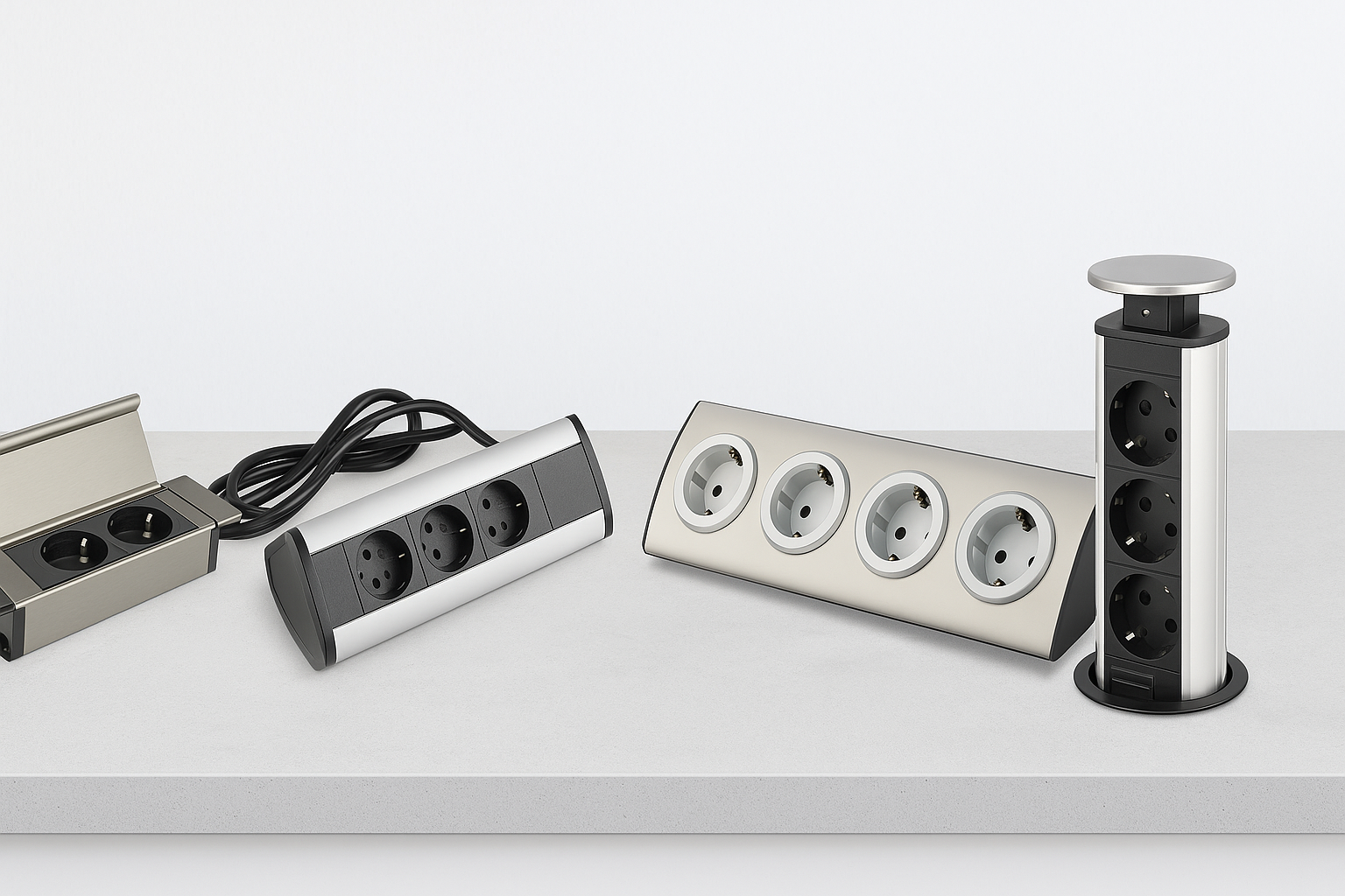 Möbel-Steckdose in mehrfacher Ausführung Küche Büro Mehrfachstecker Schwarz matt