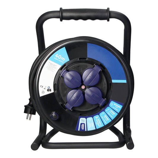 Trano Kabeltrommel 40m H07RN-F 3x2,5mm² IP44 | 4x Schuko Steckdosen mit Kinderschutz | 3200W | Gummi Kabel | Anti-Twist | Thermoschutz