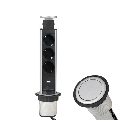 Steckdose versenkbar 3-fach Pop-Up Tischsteckdose rund Küche Büro