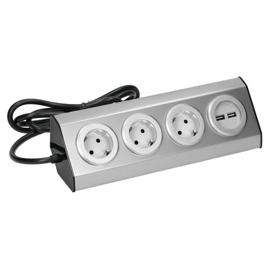 Trano Ecksteckdose 3-Fach mit 2 USB Anschlüssen, 45° Montage, Edelstahl Inox, 3680W 16A, Kabel 1,5m, Küche & Büro