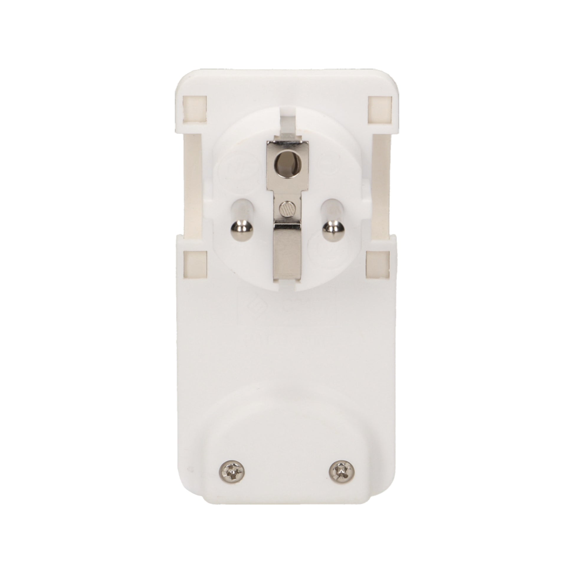 Zwei Winkelstecker besteht aus Kunststoff, sind besonders leicht und ultraflach. Schutzklasse IP20 erlaubt die Verwendung dieses Produkts nur in Trockenräumen im Innenbereich.