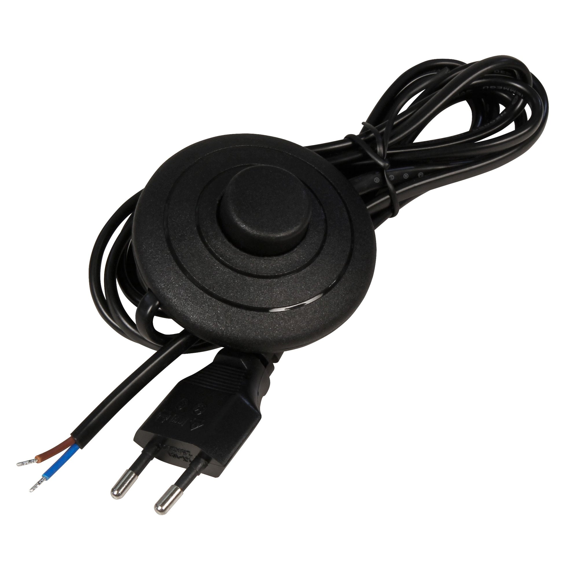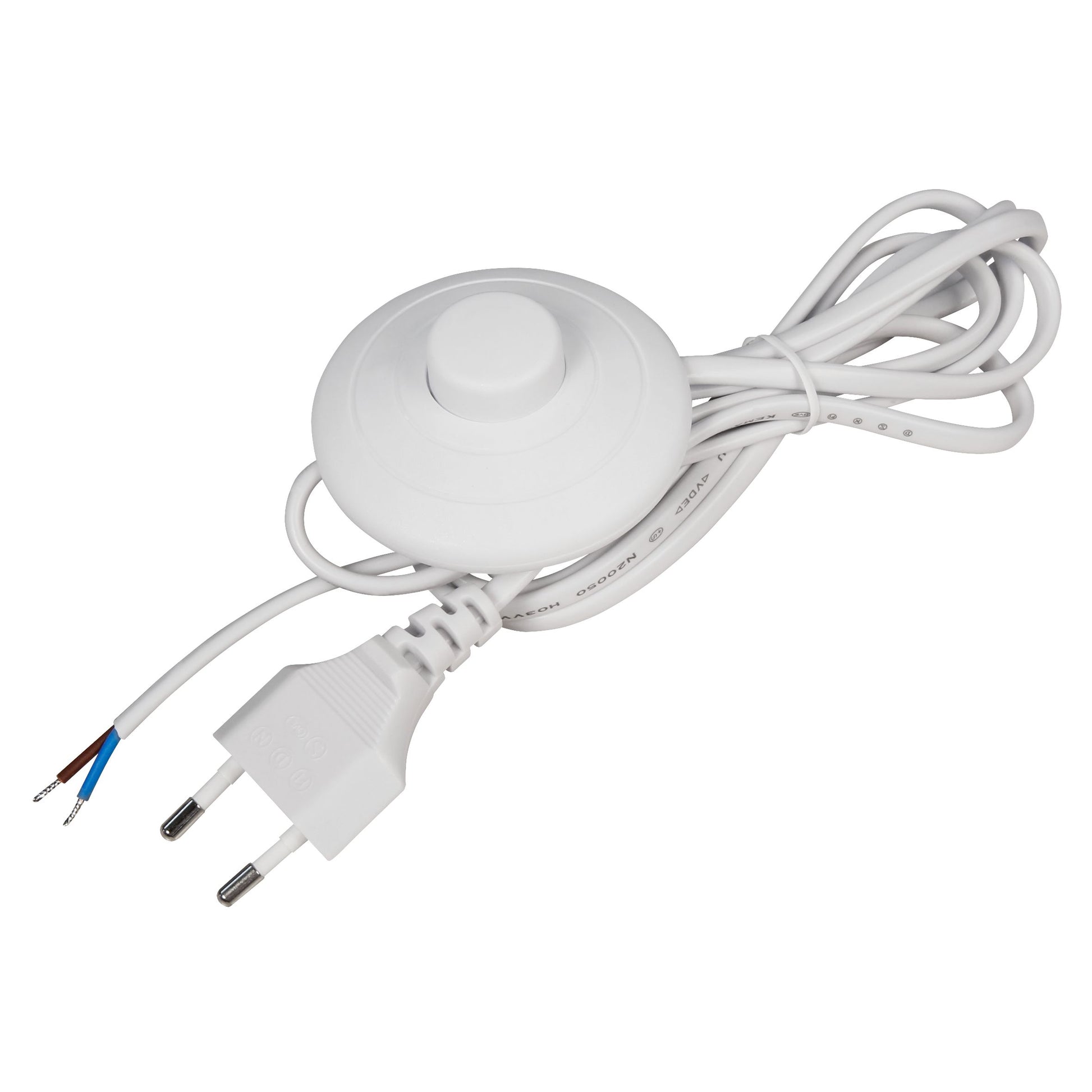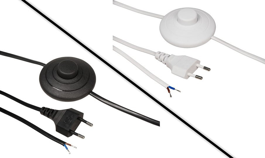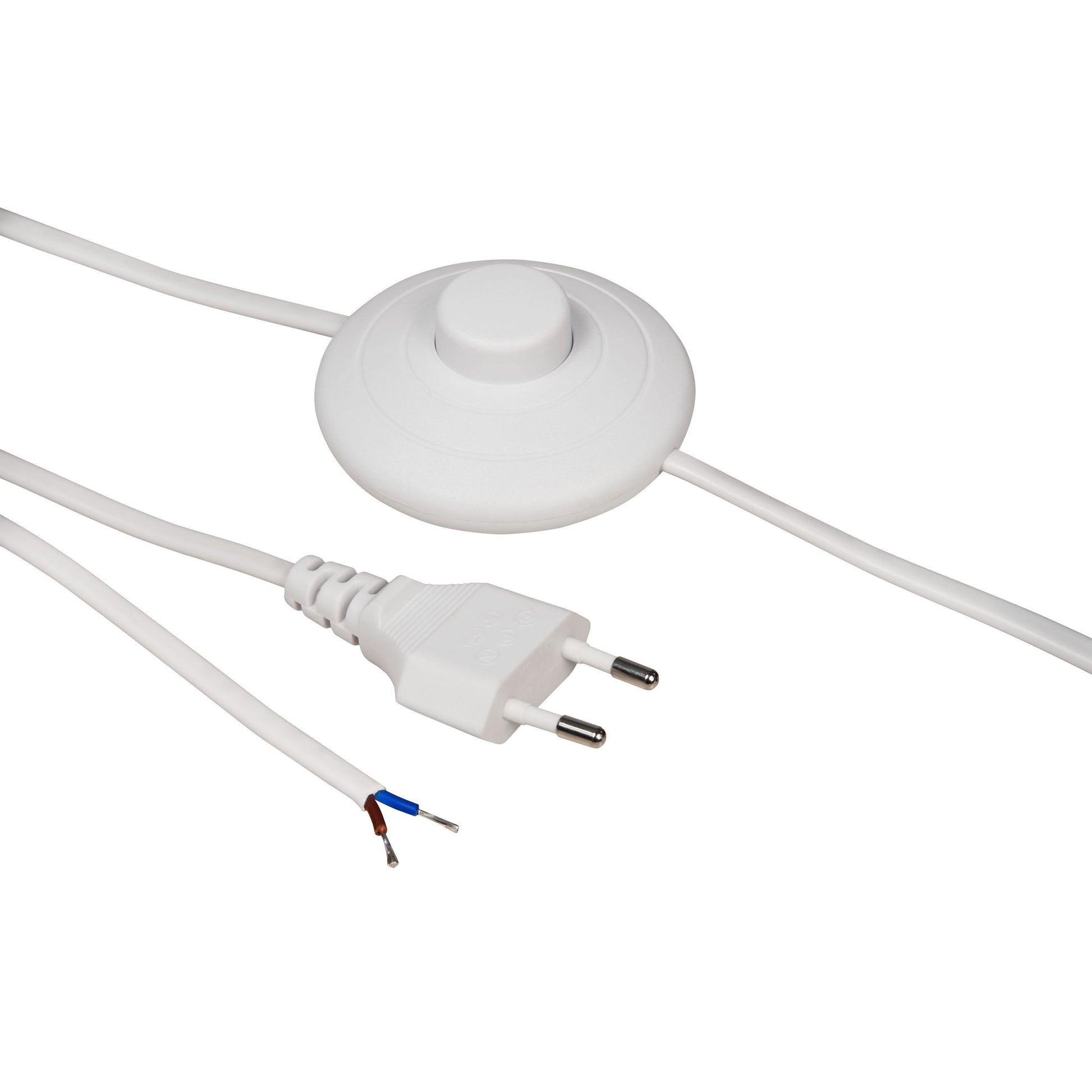 Euro-Netzkabel mit Fußschalter, 2m, Weiß/Schwarz, Blanken Enden, H03VVH2-F, 100W Max