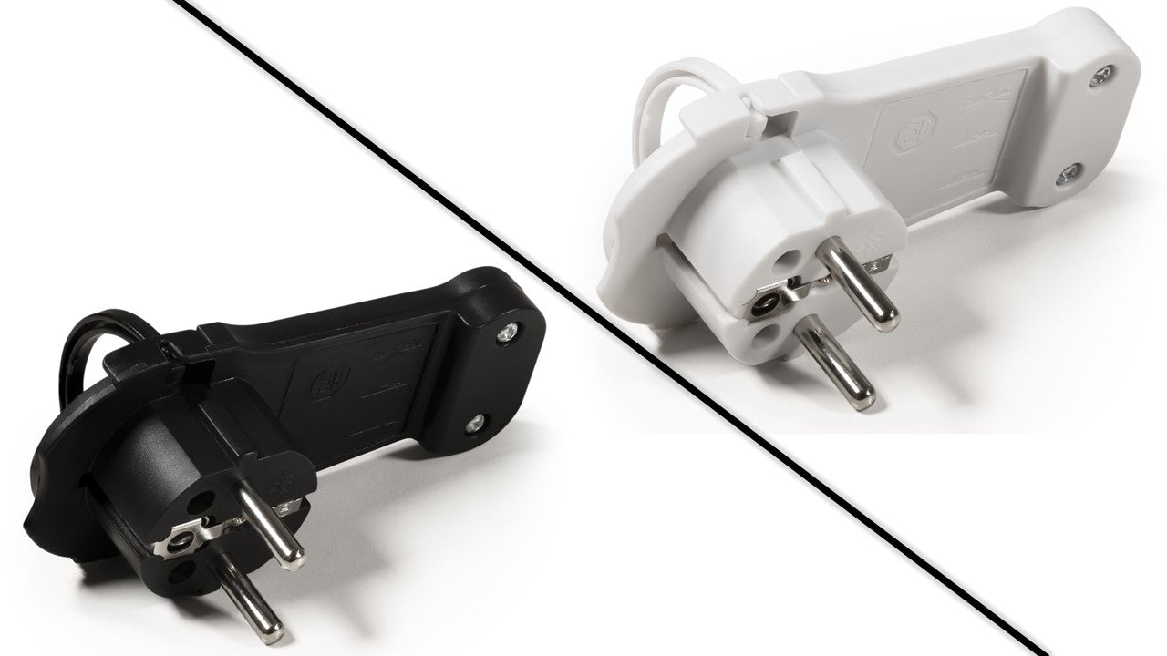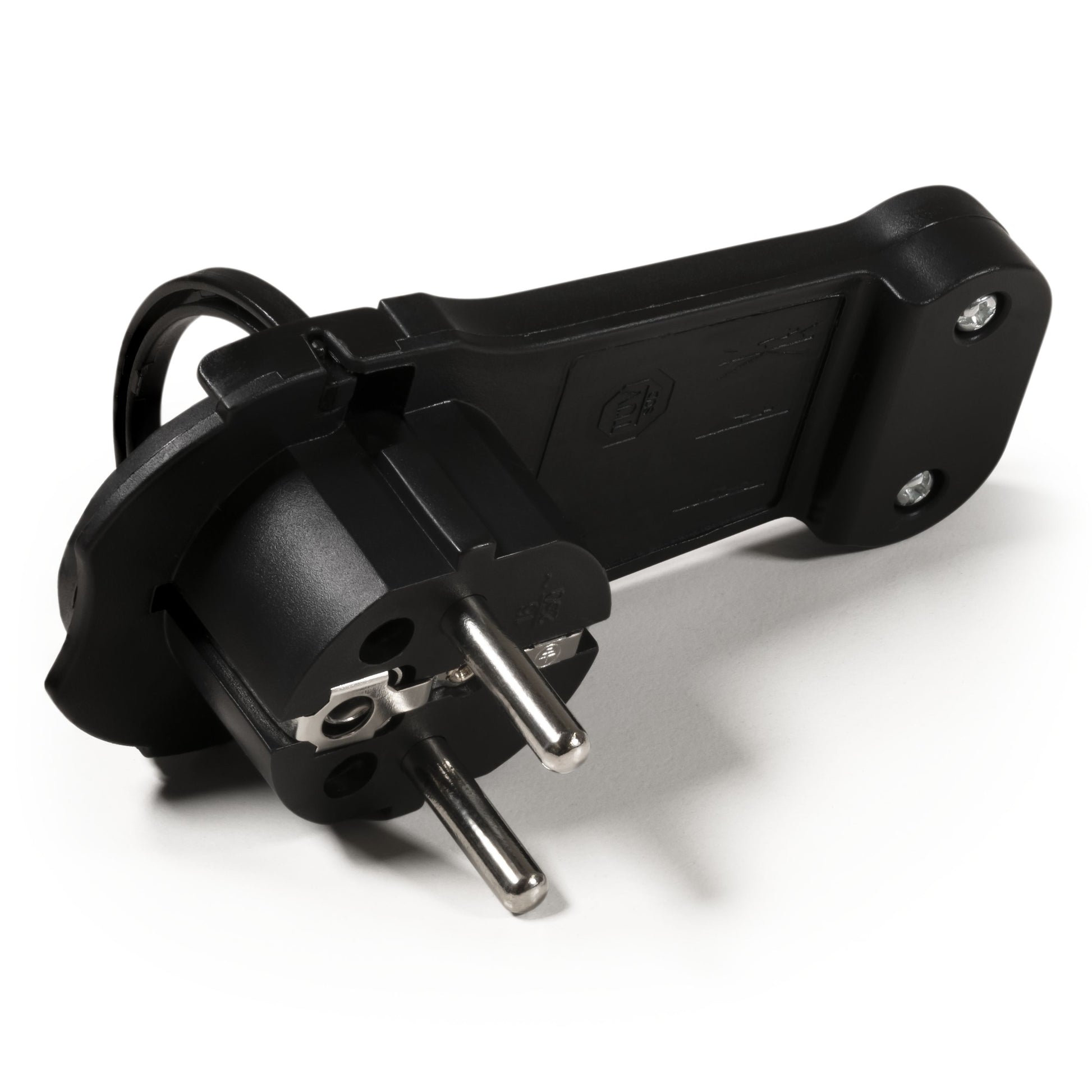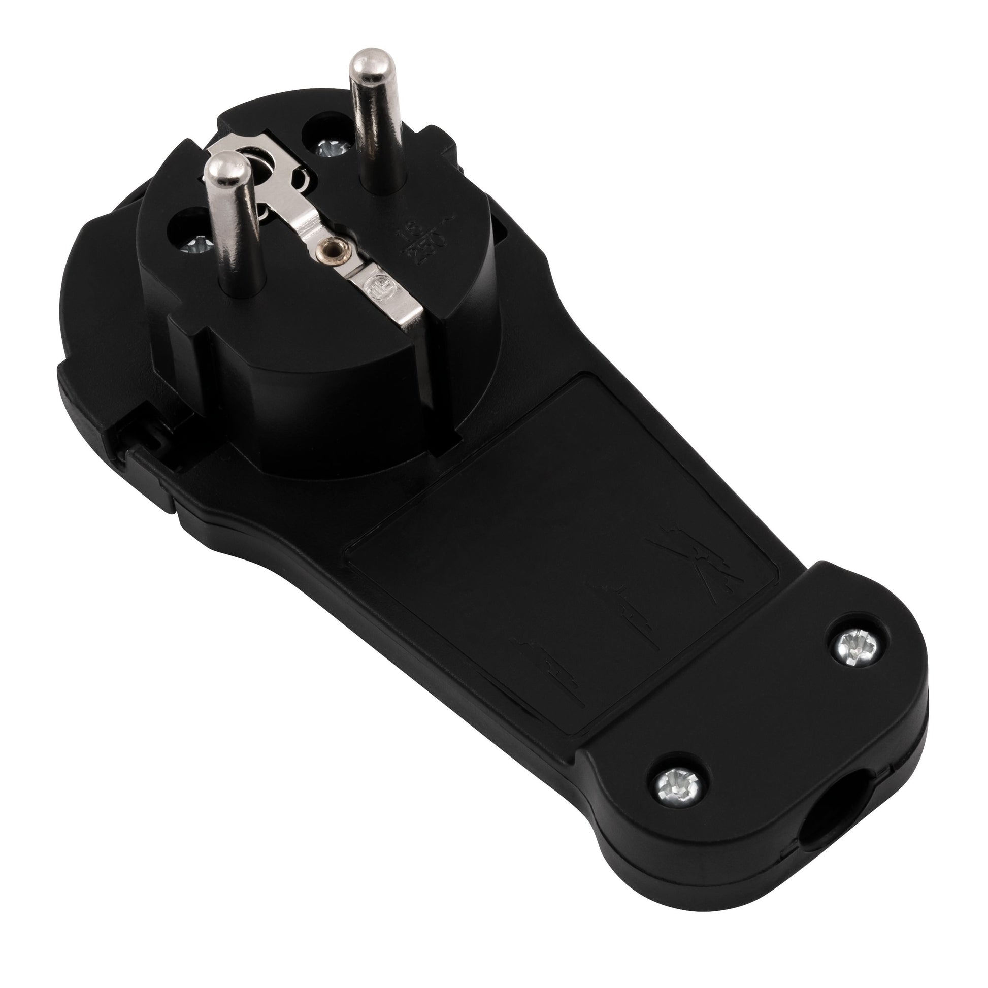 Extra Flacher Wiederanschließbarer Schutzkontakt-Winkelstecker, 250V/16A, Schwarz/Weiß