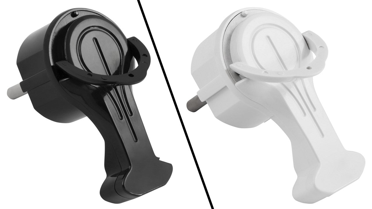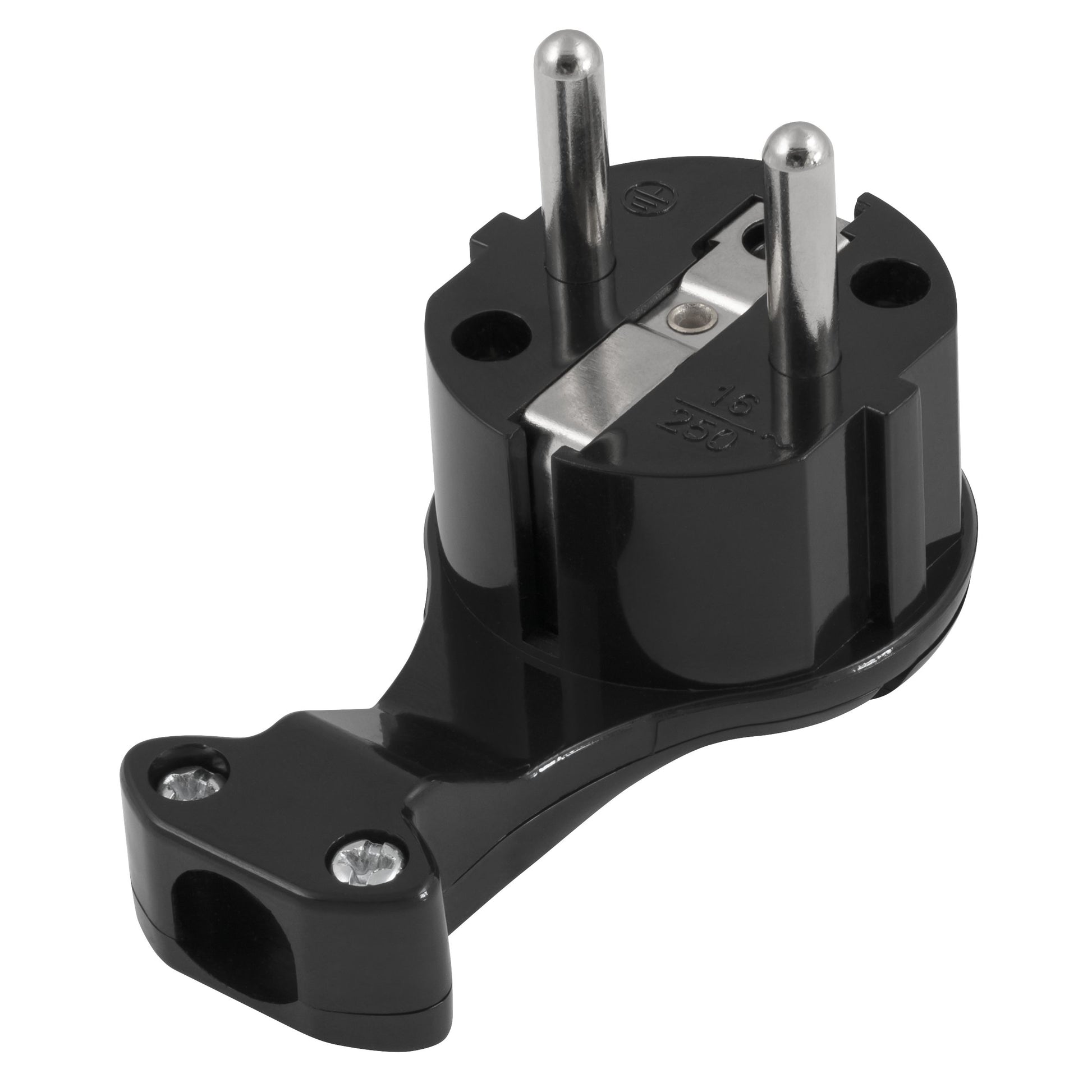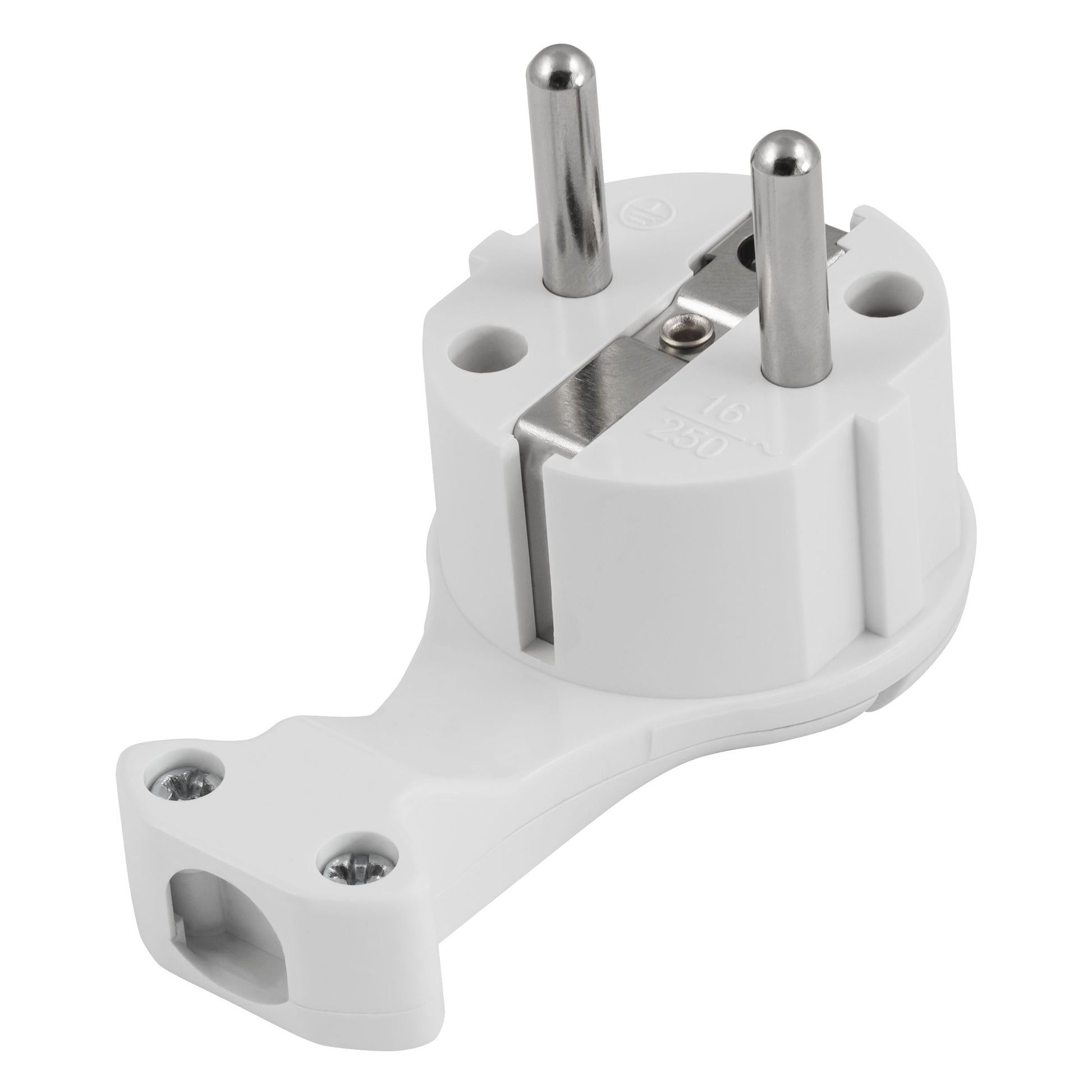 Extra Flacher Wiederanschließbarer Schutzkontakt-Winkelstecker mit Zugentlastung und Handgriff in weiß oder schwarz