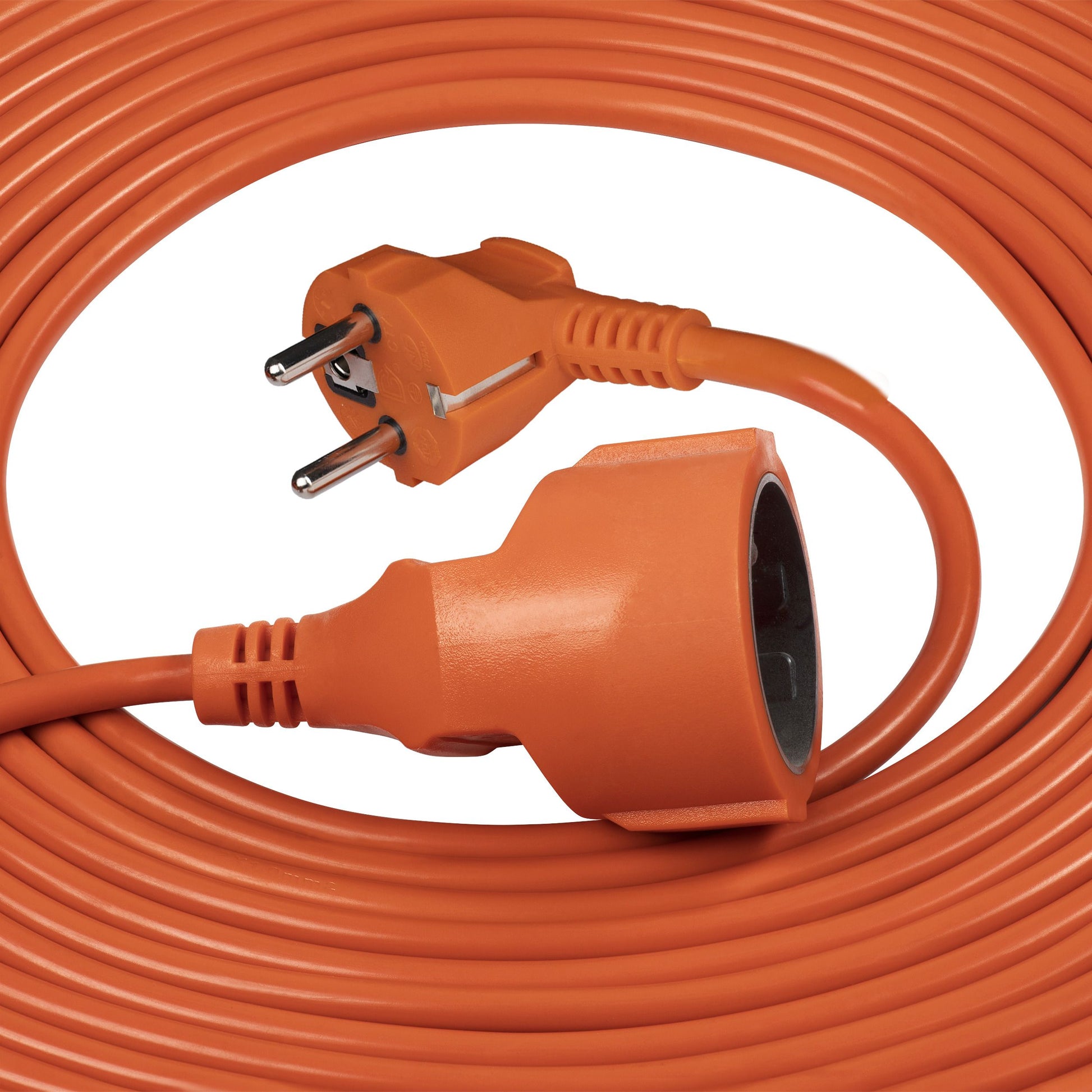 Dieses praktische Gartenverlängerungskabel in auffälligem Orange bietet Ihnen eine zuverlässige Stromversorgung im Außenbereich. Es ist in 3 Längen verfügbar, 10m, 20m, 30m. Es verfügt über eine robuste Schuko-Steckdose (2P+E) mit Kindersicherung (Safety Shutters) für erhöhte Sicherheit. Das Kabel vom Typ H05VV-F mit einem Querschnitt von 3x1mm² ist für eine maximale Last von 2300 W und einen Nennstrom von 10 A ausgelegt. Das Gehäuse in der Form "Innen" ist aus widerstandsfähigem, thermoplastischem Kunststoff gefertigt und hat eine matte Oberfläche. Es ist staub- und spritzwassergeschützt gemäß IP20 und kann bei Temperaturen von -10°C bis +40°C eingesetzt werden. Das Verlängerungskabel hat Abmessungen von 175 x 175 x 52 mm (Breite x Höhe x Tiefe) und wiegt 0,875 kg. Die Nennspannung beträgt 230 V bei einer Frequenz von 50 Hz.