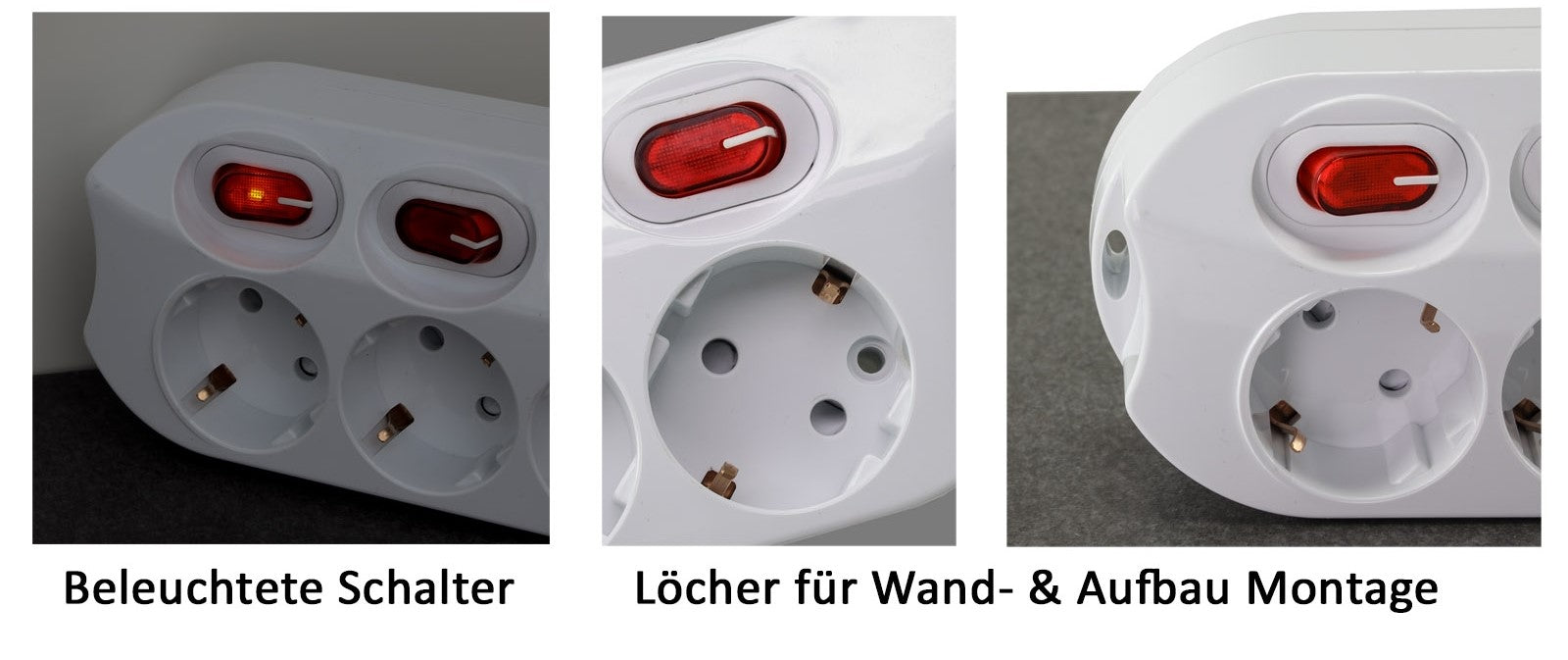 Die technischen Daten sind beeindruckend: Mit einem 1,5m langen Anschlusskabel und einem deutschen Winkelstecker ausgestattet, können diese Leisten eine Spannung von 230V/16A und eine maximale Leistung von 3680 Watt bewältigen.