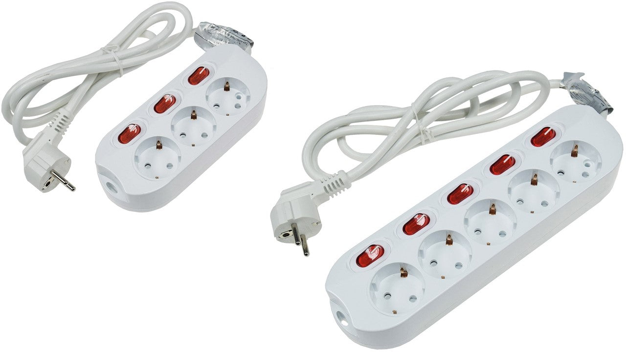 Zum Verkauf stehen hochwertige Steckdosenleisten mit Einstecksicherung, ideal für den Innenbereich. Diese Leisten sind mit 3 oder 5 Schutzkontakt-Steckdosen ausgestattet, jede mit einem eigenen Ein-/Aus-Schalter für maximale Kontrolle und Energieeffizienz.