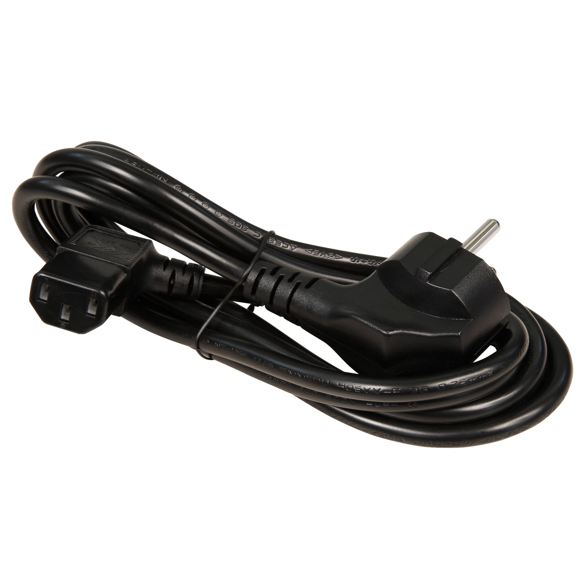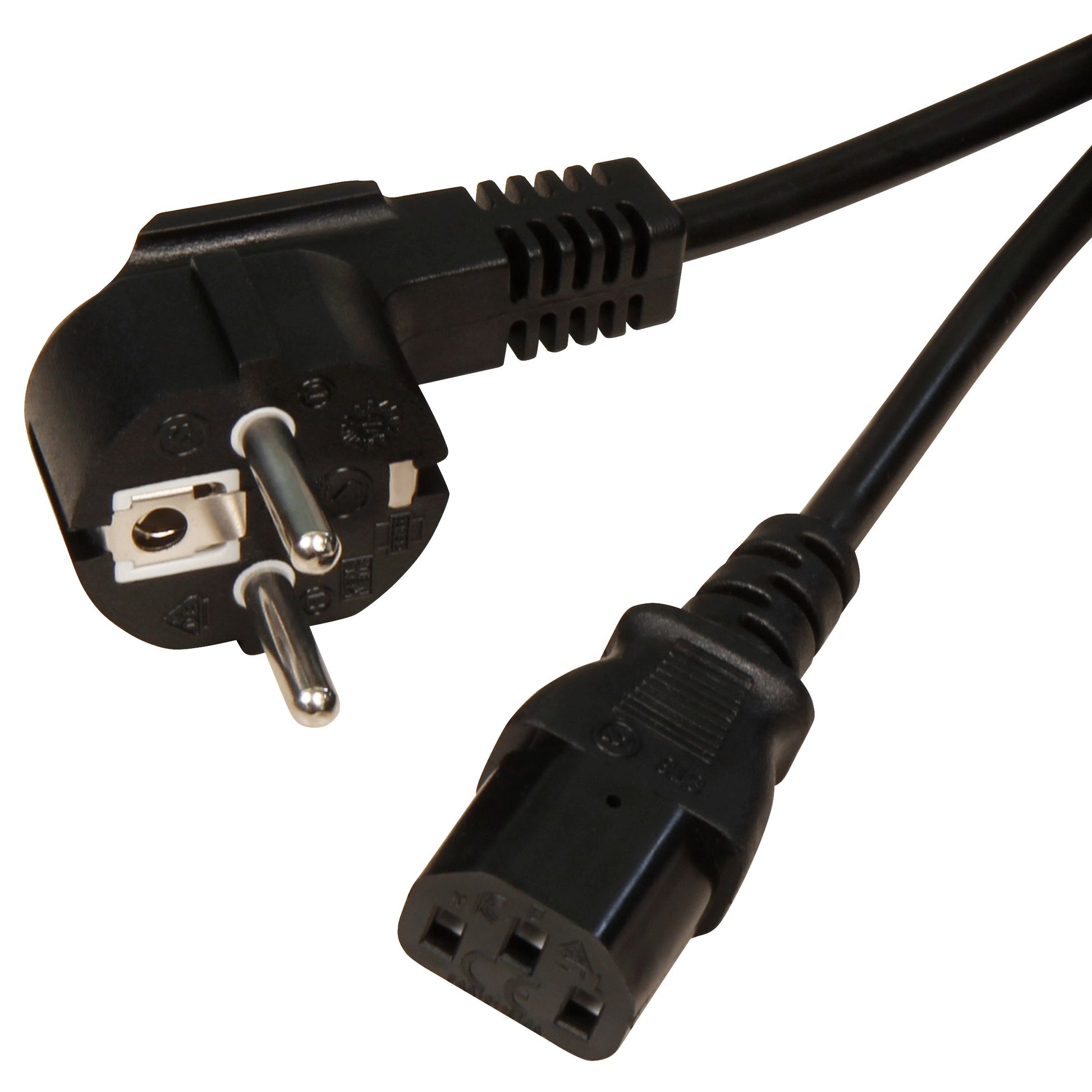 Kaltgeräte Anschlusskabel in Schwarz, 3 Varianten, abgewinkelter Schutzkontaktstecker, 250V Betriebsspannung, 10A max. Strombelastbarkeit