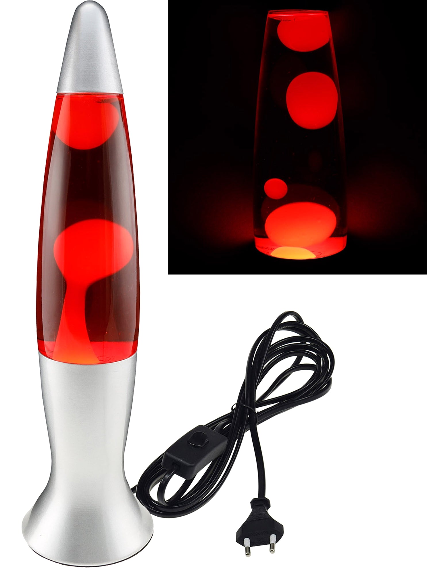 Lavalampe 40cm Wasser: Rot, Wachs: Gelb, Body: Silber