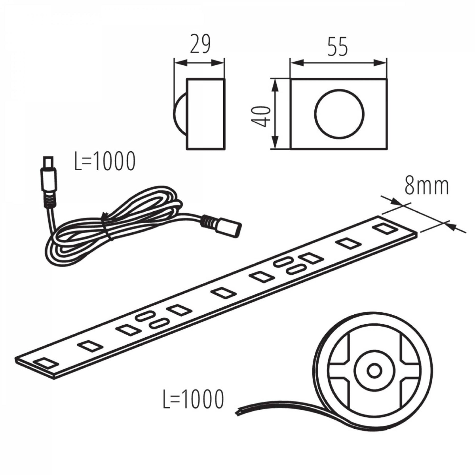 - Abmessungen LED Streifen: 8x1000mm