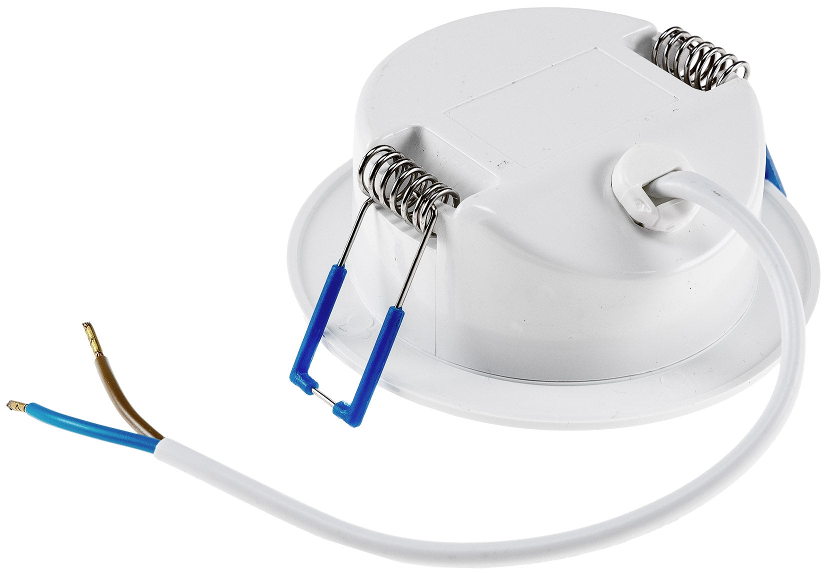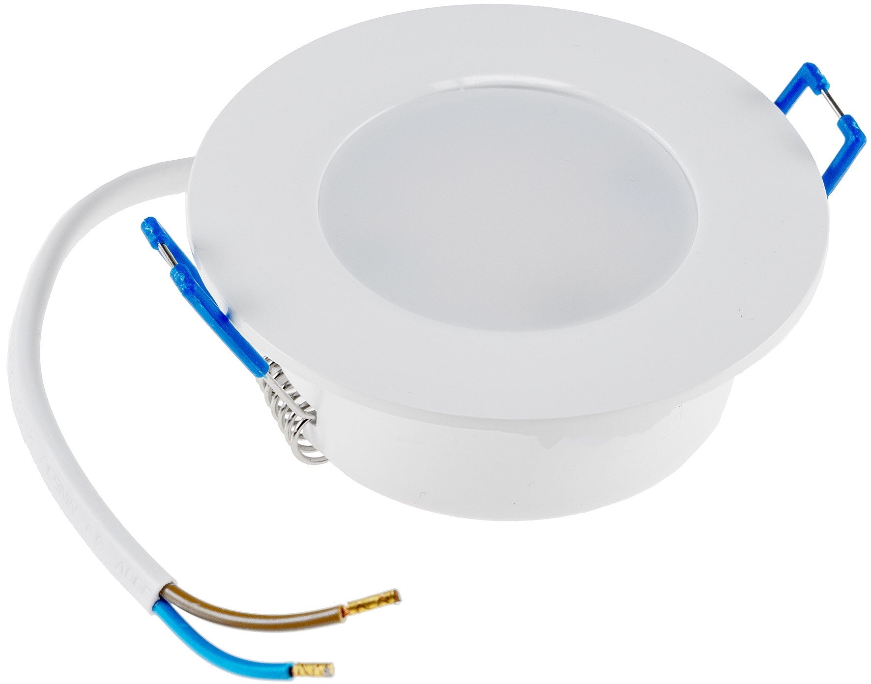 Die Leuchte hat einen Durchmesser von 85mm und eine Länge von 30mm. Für den Einbau benötigen Sie ein Loch mit einem Durchmesser von 68mm und einer Einbautiefe von 30mm. Sie wird mit einem 15cm Anschlusskabel mit blanken Enden geliefert.