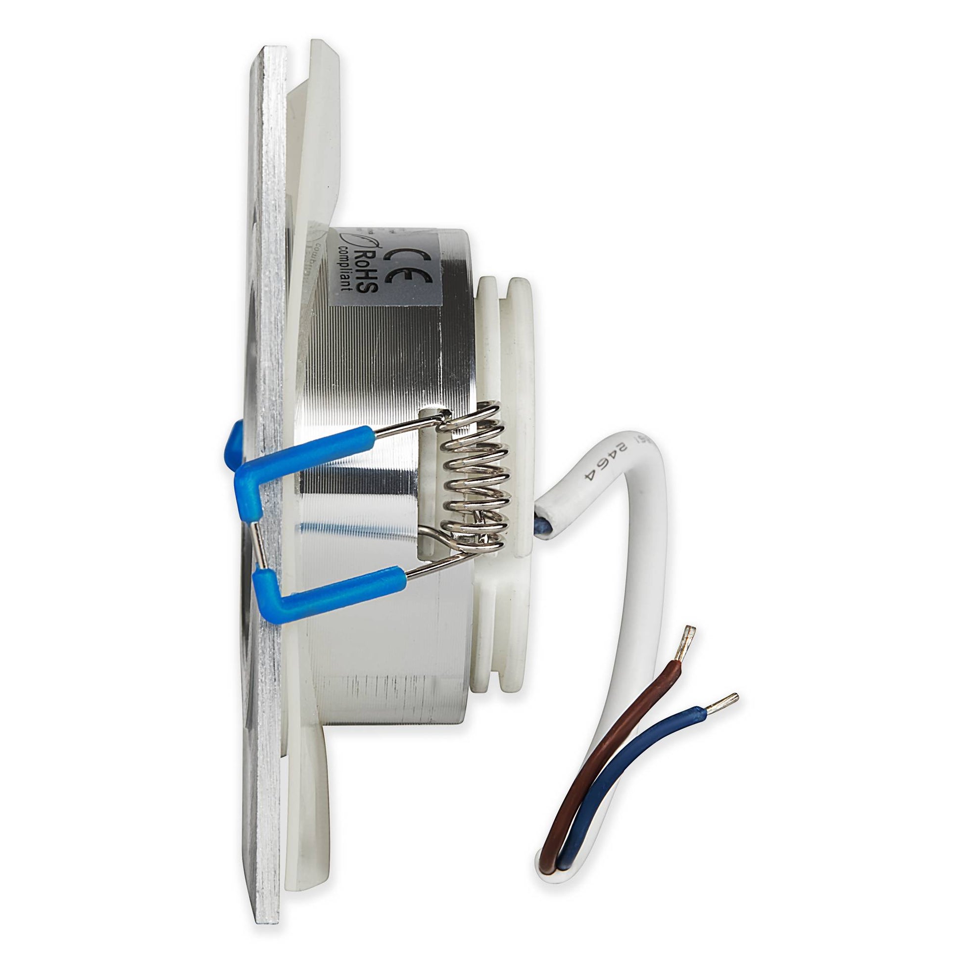 Sein flaches Design und die quadratische Form ermöglichen eine unkomplizierte und platzsparende Montage auch in schmalen Decken oder Wänden. Dabei beträgt die Einbautiefe nur 30mm inkl. Led Modul.