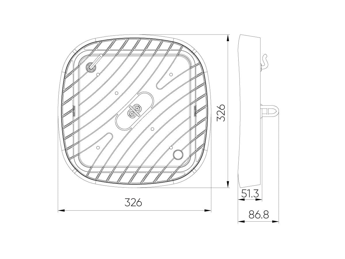 - Länge x Breite x Höhe: 326 x 326 x 64 mm