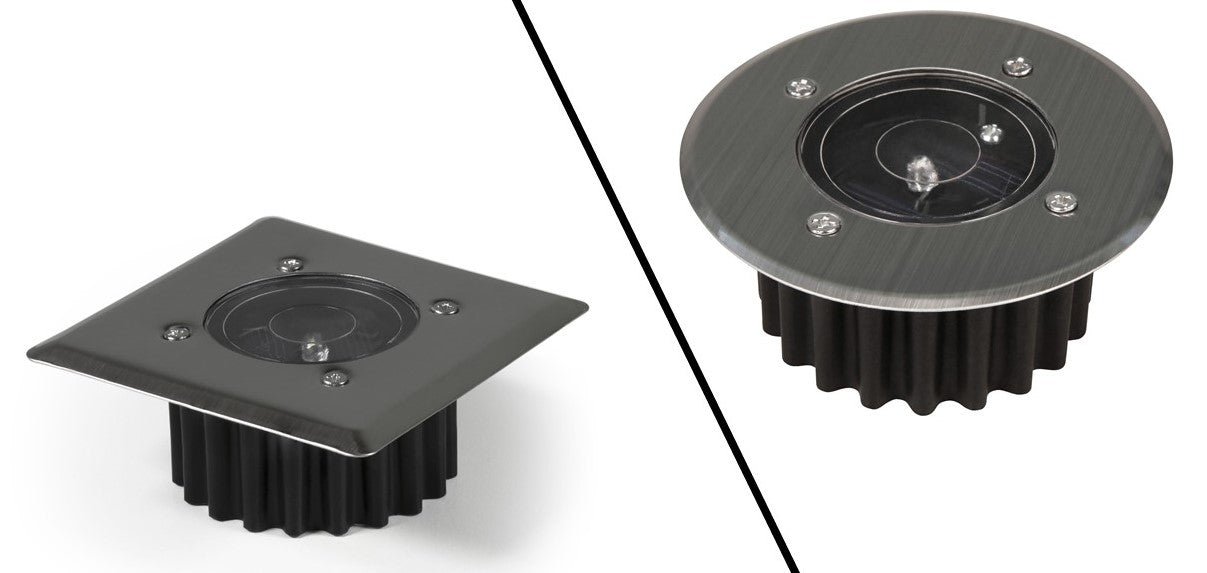 LED-Solar-Bodeneinbauleuchte, IP44, 7000K, Edelstahlfront, Eckig/Rund, 8 Stunden Laufzeit