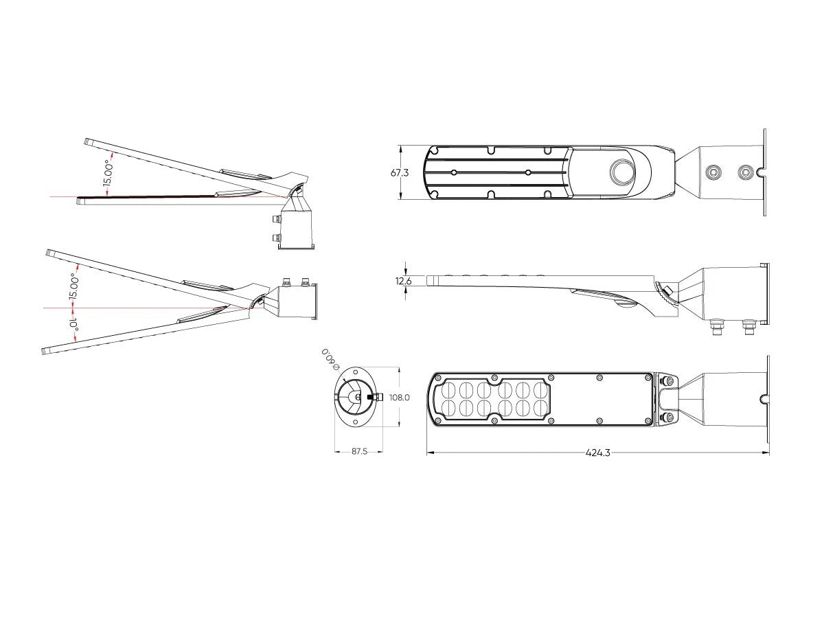 Die Straßenleuchte ist robust und langlebig konzipiert. Dank der SMD LED Dioden und einer Lebensdauer von 25.000 Stunden (L70B50) können Sie sich auf eine langfristige und wartungsarme Beleuchtung verlassen. Die hohe Schutzklasse IP65 (nicht explizit in den Daten, aber für Straßenleuchten üblich – falls abweichend, bitte korrigieren) macht sie widerstandsfähig gegenüber Witterungseinflüssen, und die Betriebstemperatur von -25°C bis 50°C garantiert eine zuverlässige Funktion unter verschiedenen Bedingungen.
