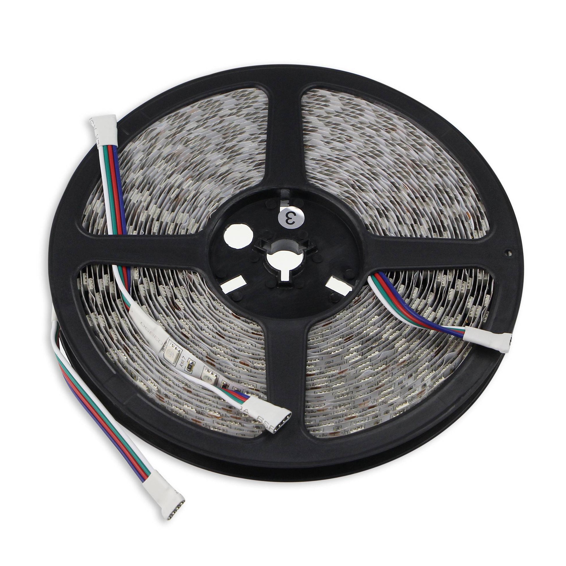 Mit einer Leistung von 4,8Watt/Meter erzeugen die RGB- LED-Strips helles Licht und haben eine ausgesprochen lange Lebensdauer. Die Streifen sind mit 60 LEDs/Meter ausgestattet, womit sich ganz flexibel die Beleuchtung nach Ihren Wünschen einrichten lässt.