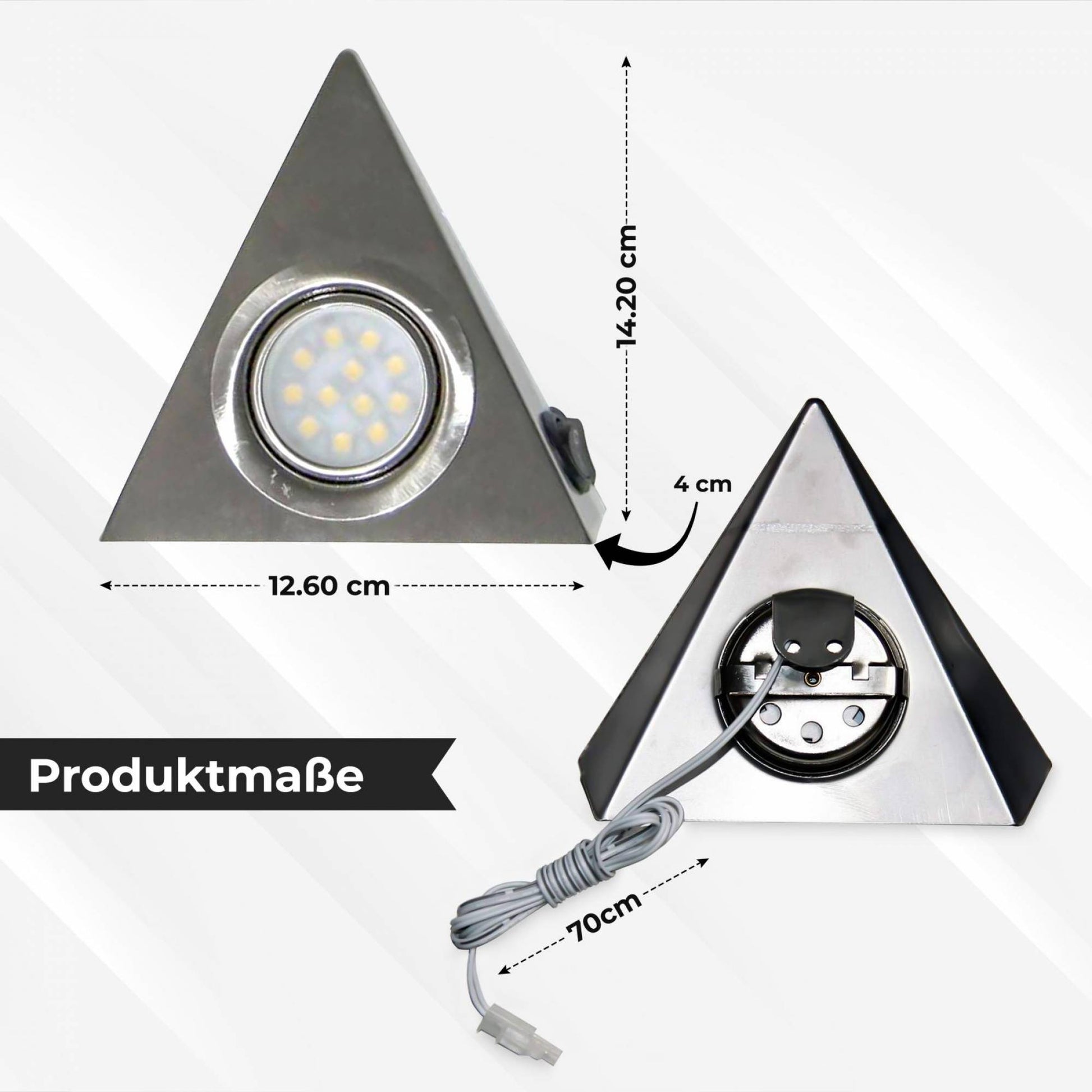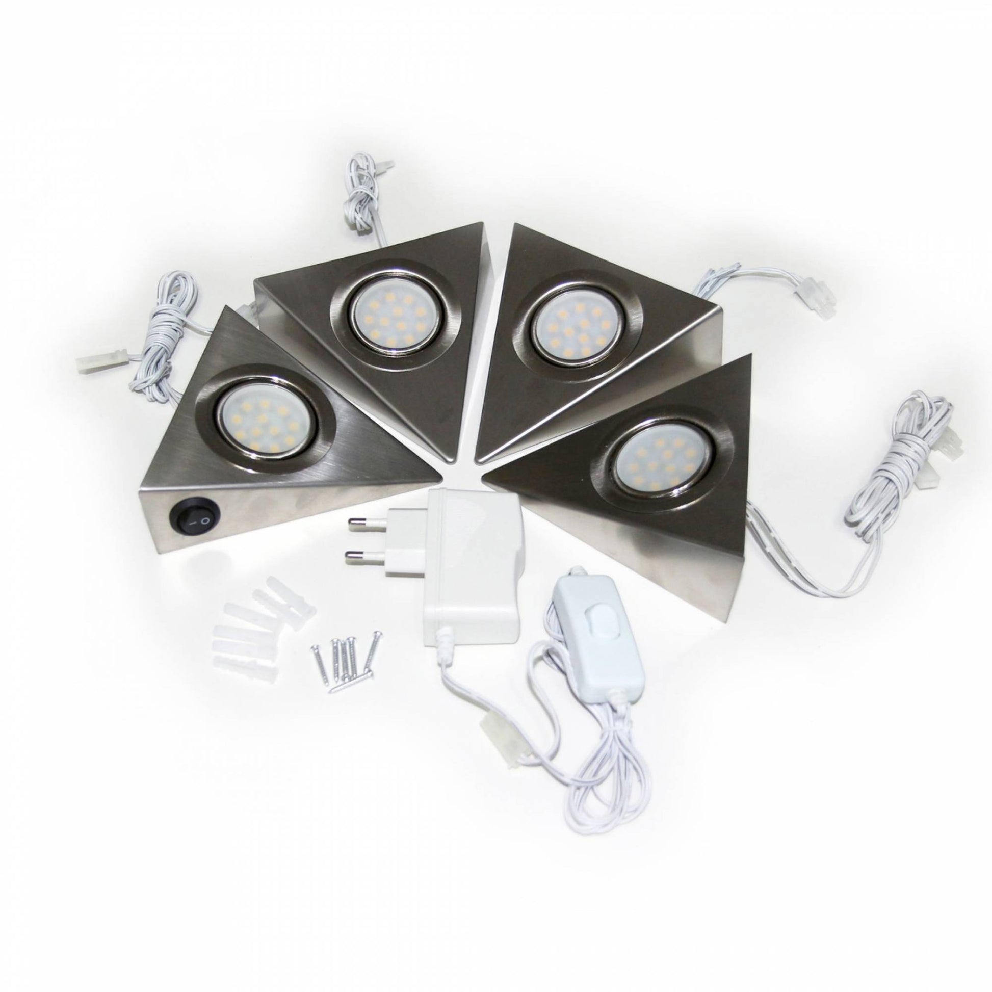 Verleihen Sie Ihrer Küche oder Ihrem Schrank mit diesem LED Dreieckslampen-Set aus rostfreien gebürsteten Edelstahl ein neues Highlight. Es ist nicht nur ein schönes, sondern auch ein nützliches Accessoire. Es lässt Ihr Arbeitsumfeld im schönen neutralweißen Licht erstrahlen. Alle Leuchten werden über einen Schalter an der Seite einer Leuchte an- und ausgeschaltet.