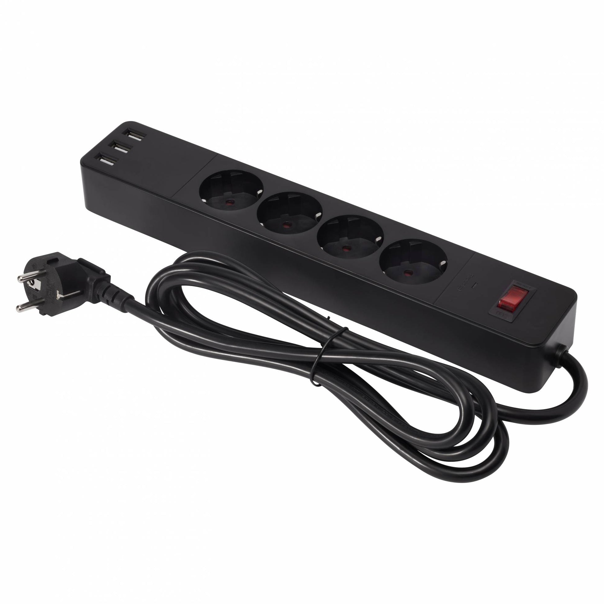 Die Steckdose besteht aus hochwertigem feuerfestem Kunststoff und verfügt über ein Anschlusskabel mit EU-Stecker (1,8m). Ausgestattet mit vier Steckplätzen und 3 USB Anschlüssen, bietet die Steckdose viele Möglichkeiten zum Anschließen und/ oder Aufladen von unterschiedlichen elektrischen Geräten. Gleichzeitige Nutzung von mehreren Geräten ist möglich, jedoch darf die zulässige max. Last von 4000W nicht überschritten werden.
