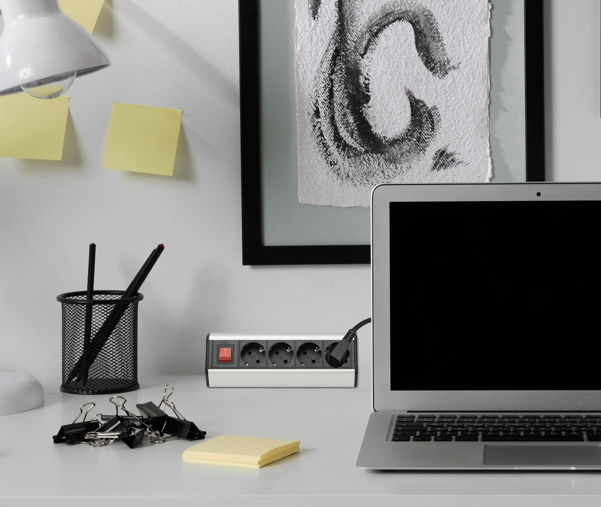 Praktische Mehrfachsteckdose, kann sowohl als Möbel- oder Schreibtischsteckdose verwendet werden.