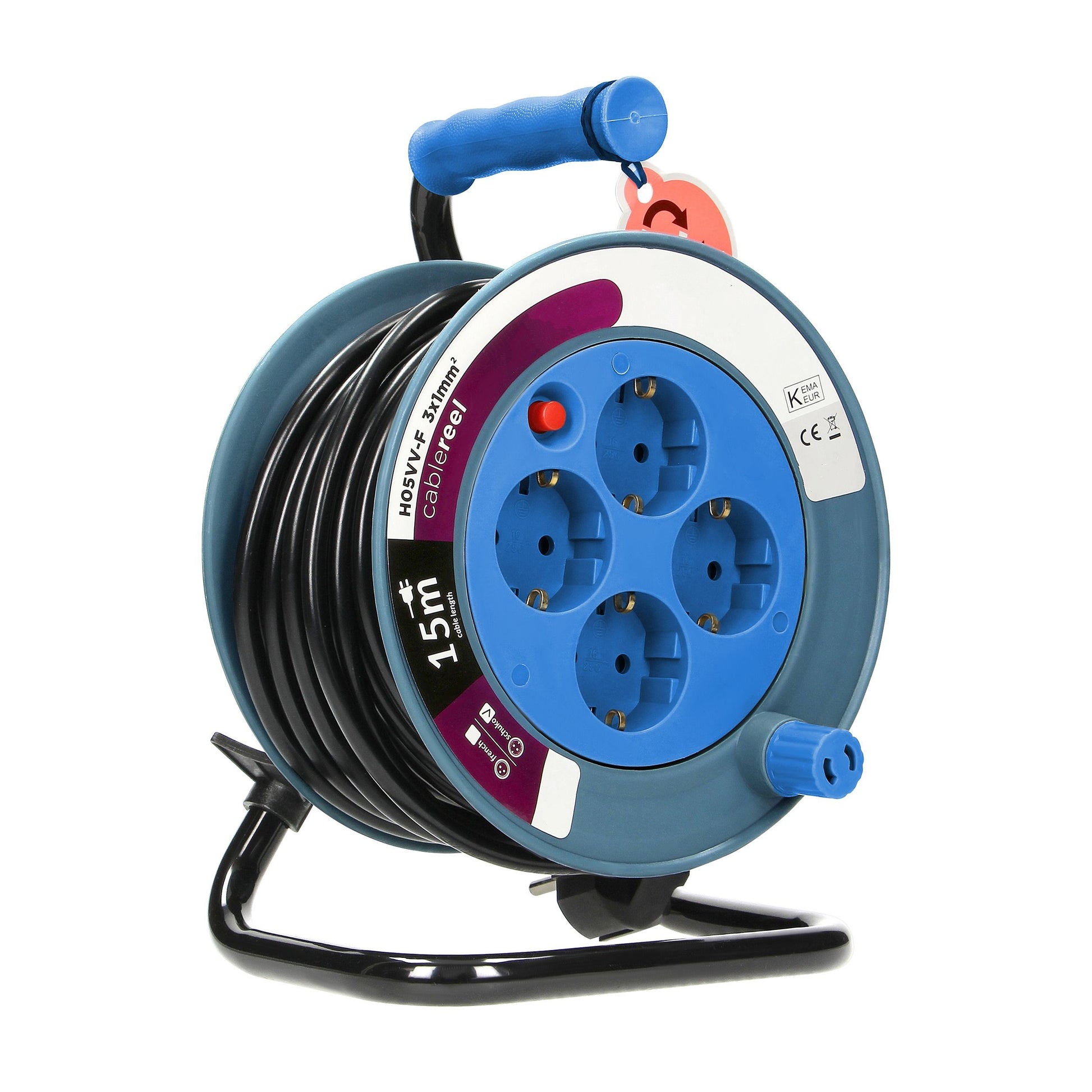 Diese MINI Trommelverlängerung in auffälligem Türkis ist ein unverzichtbares Werkzeug für alle Ihre Strombedürfnisse. Sie verfügt über ein 15 Meter langes PVC-Kabel der Serie H05VV-F mit einem Kernabschnitt von 1mm² und 3 Drähten. Die Verlängerung ist mit 4 Schuko-Steckdosen (Typ F) ausgestattet, die eine Versorgungsspannung von 230V~ bei 50Hz liefern.
