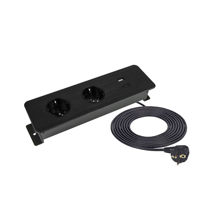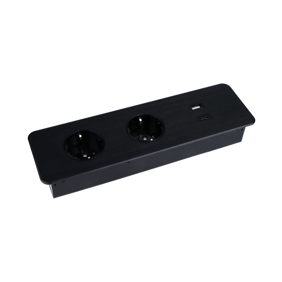 Möbel-Einbausteckdose TAOBOX schwarz mit USB A und USB C / Tischsteckdose