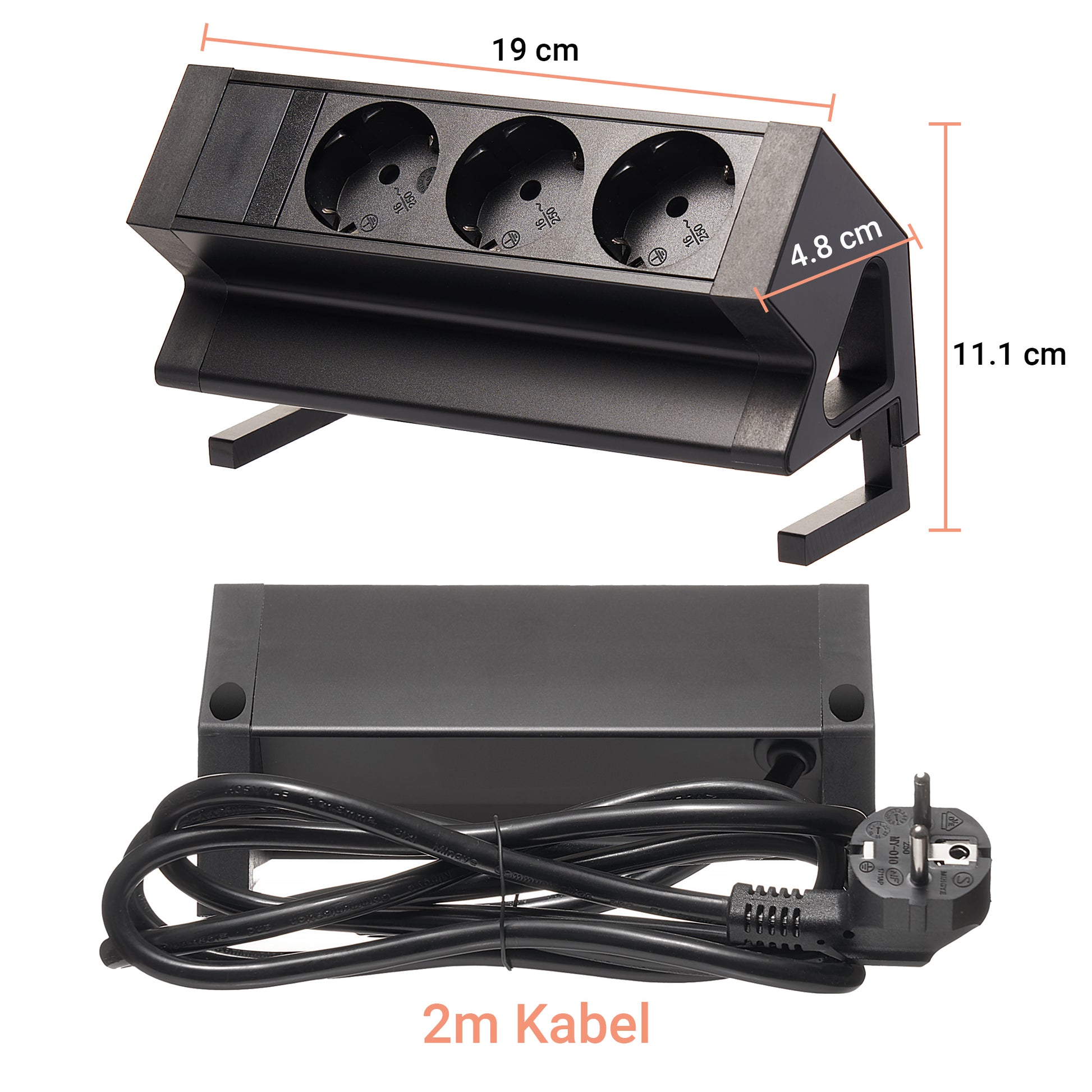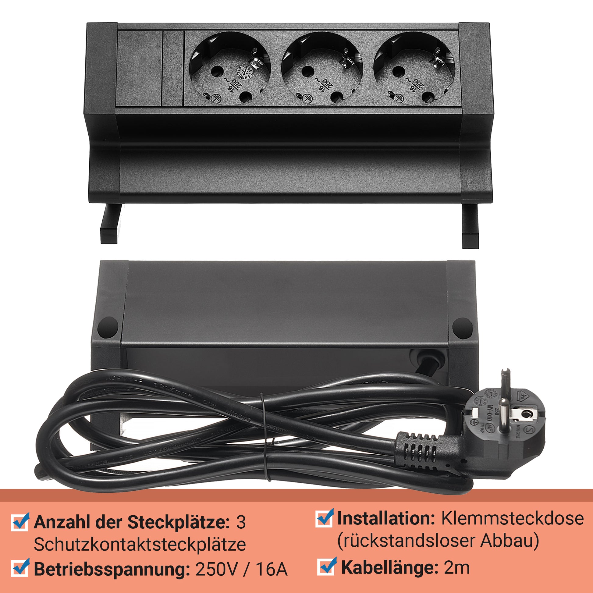 Möbel-Steckdose 3-fach Mehrfachsteckdose Steckdosenleiste Büro 2m Kabel Tisch