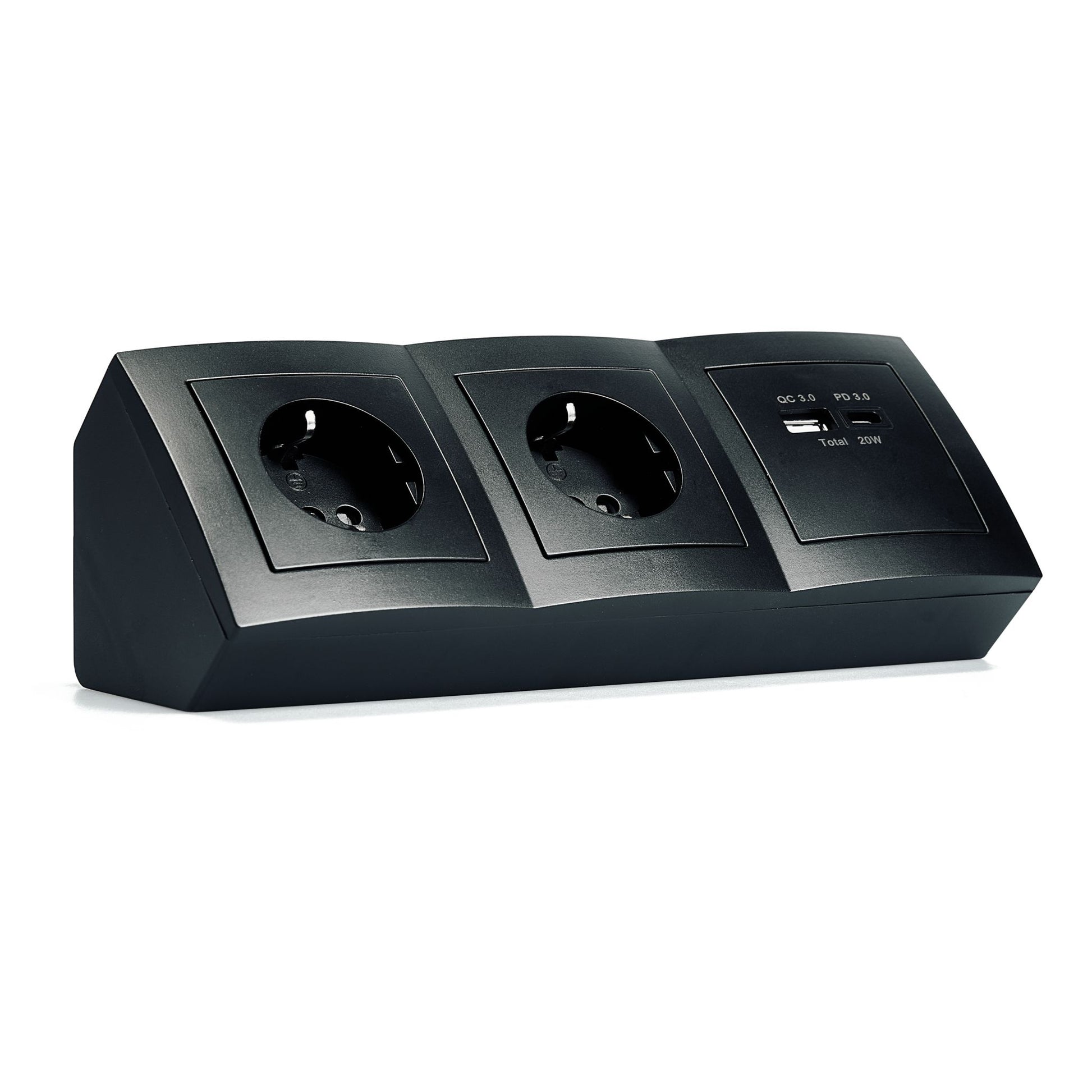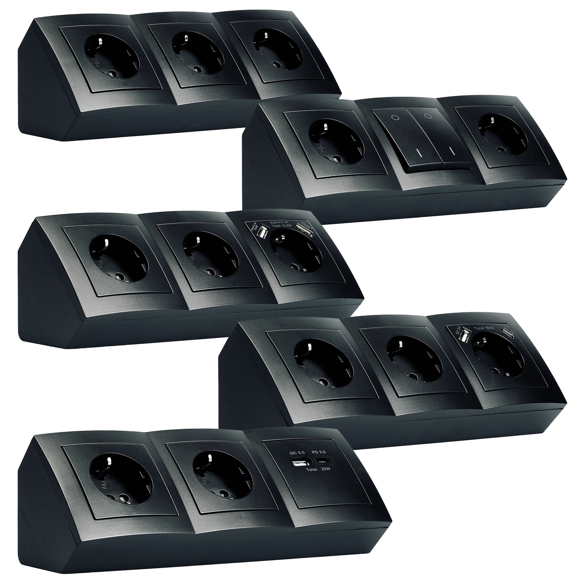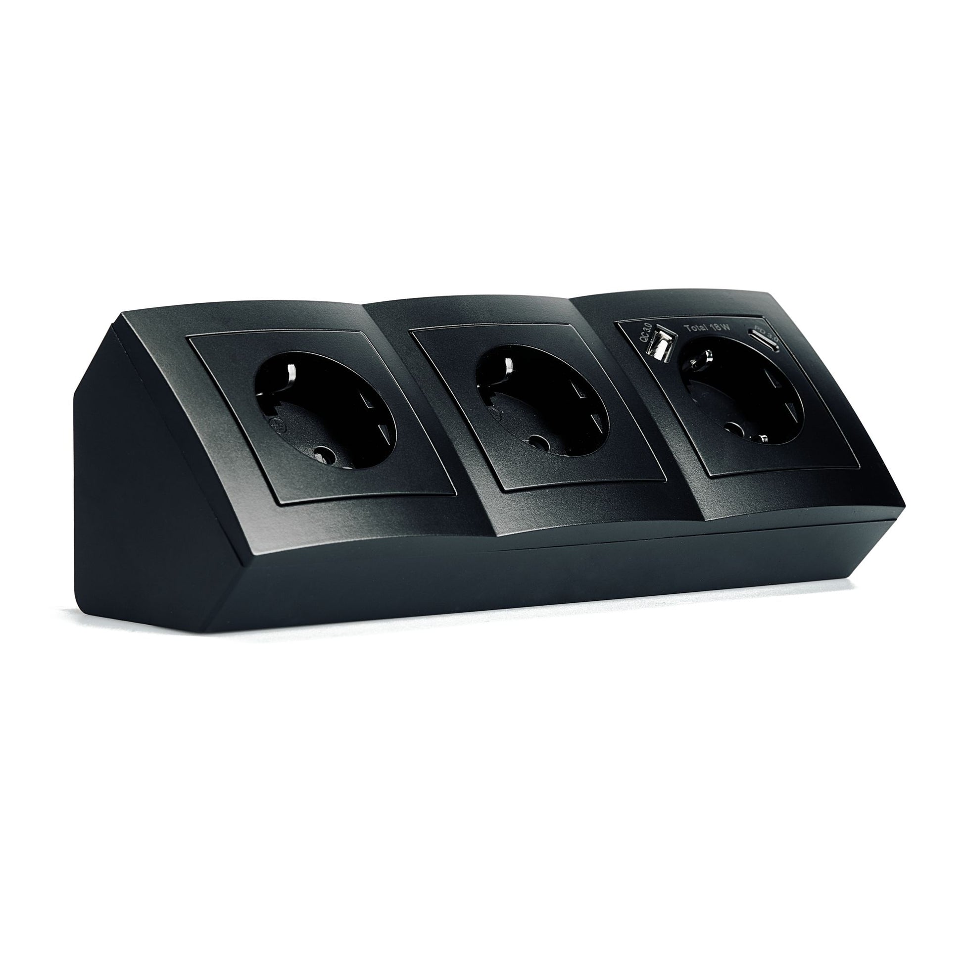 Möbel-Steckdose in mehrfacher Ausführung Küche Büro Mehrfachstecker Schwarz matt