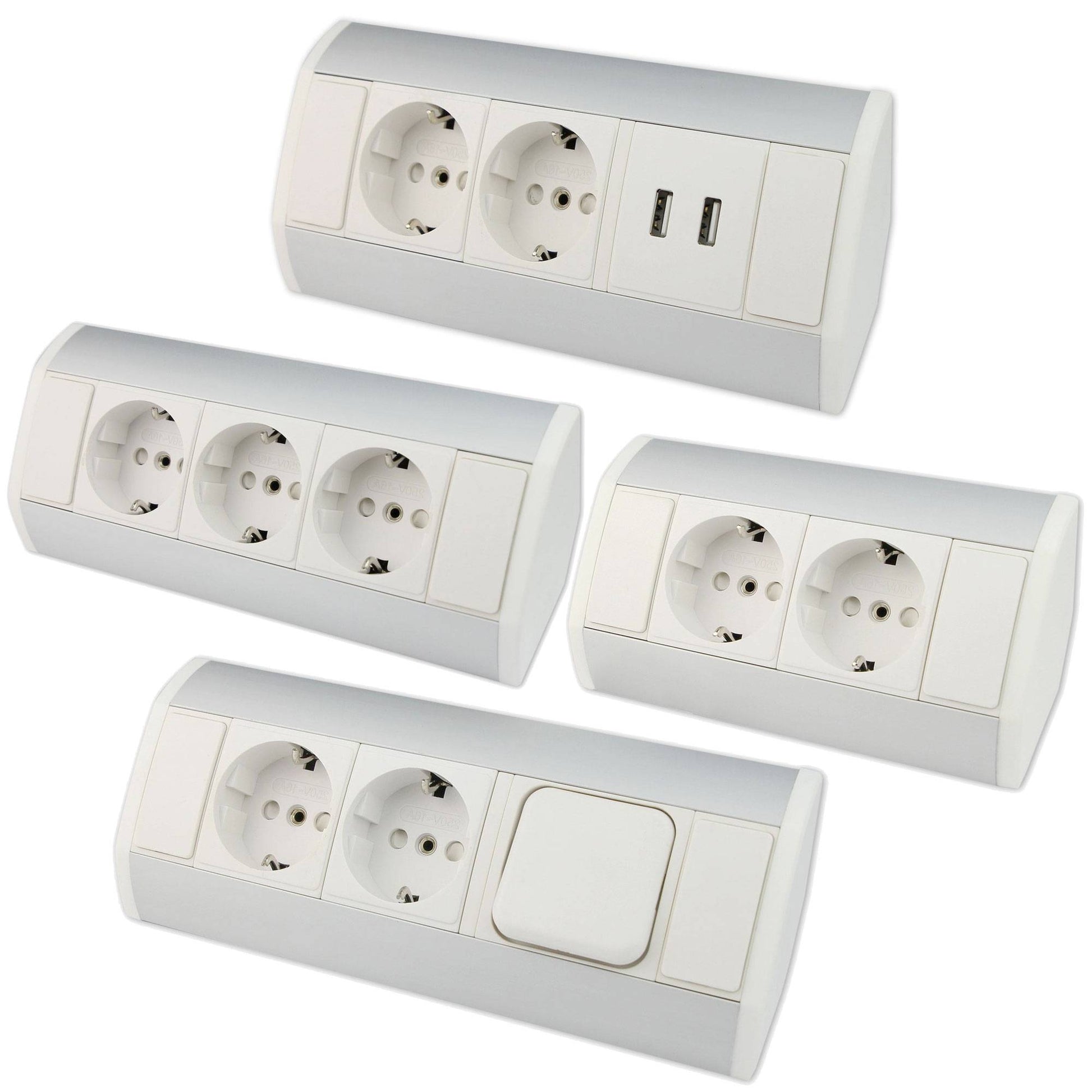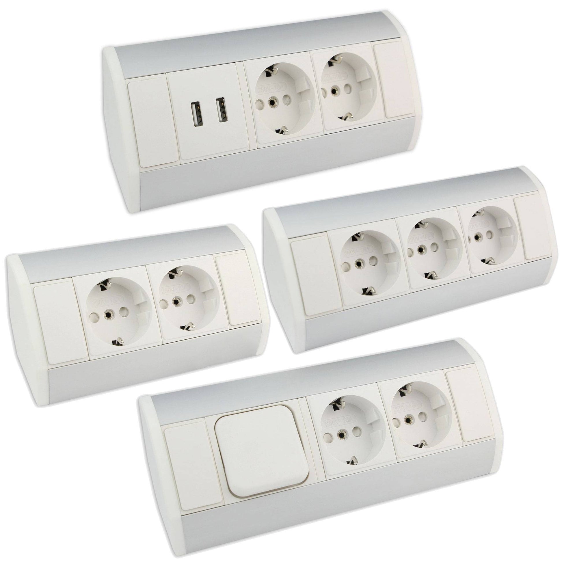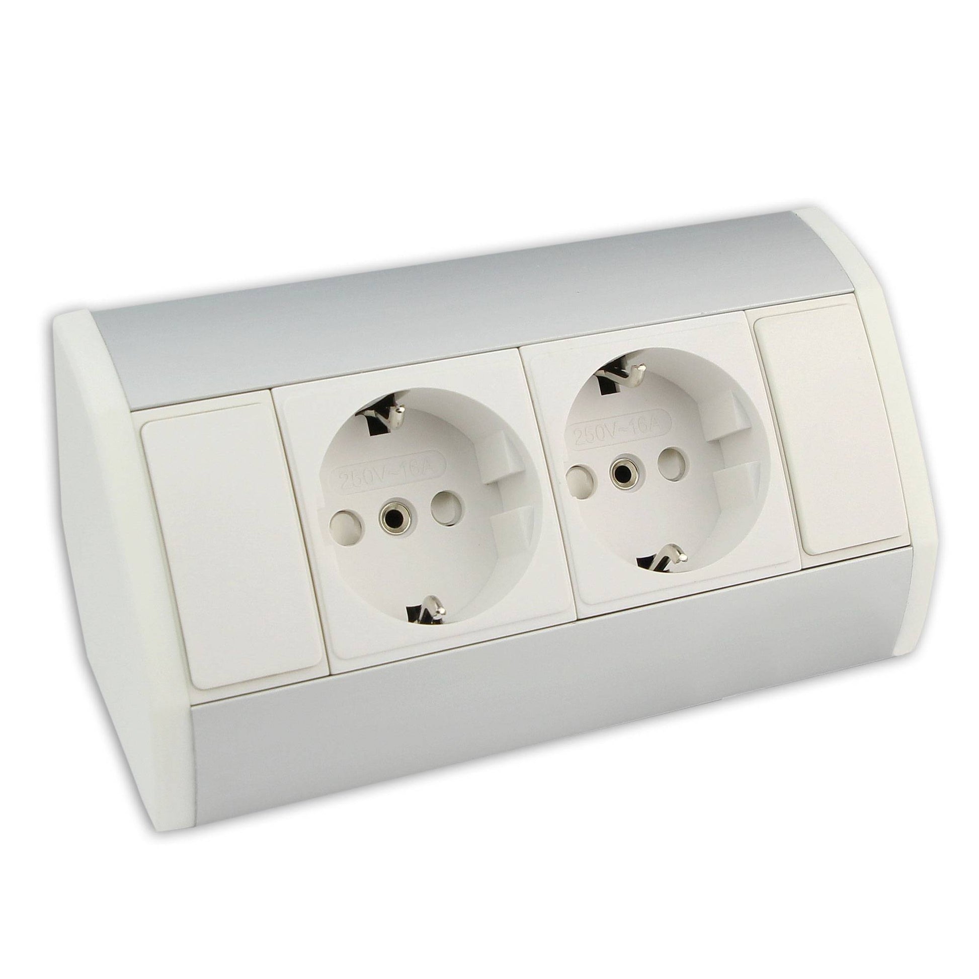 Möbel-Steckdose weiß Aluminium Schalter Tischsteckdose Küchensteckdose