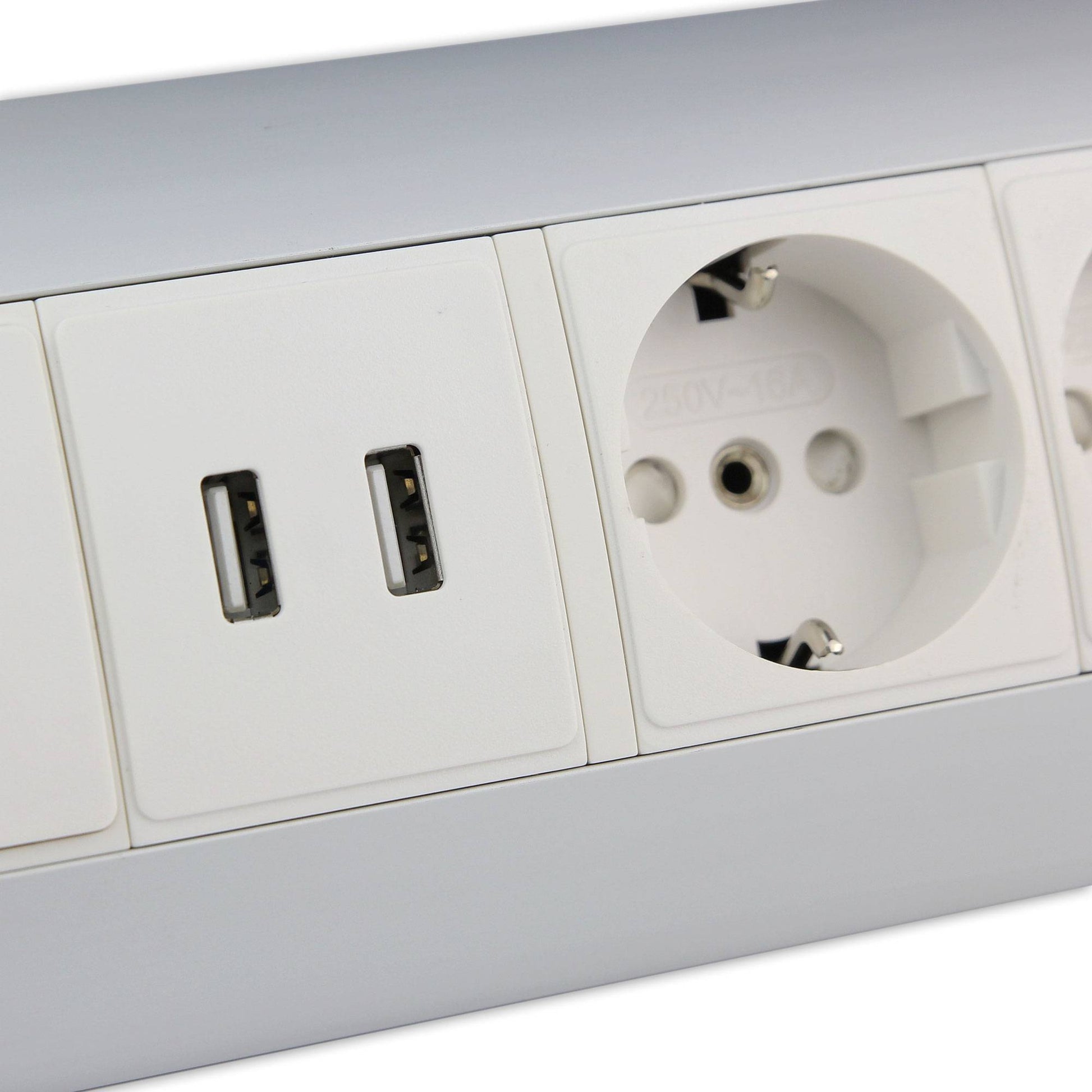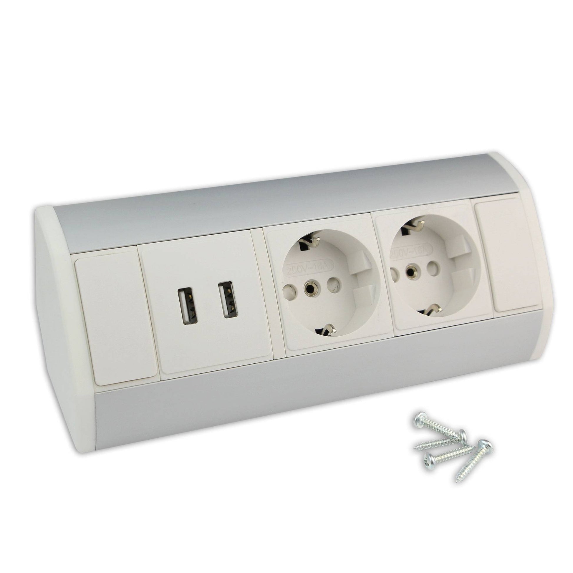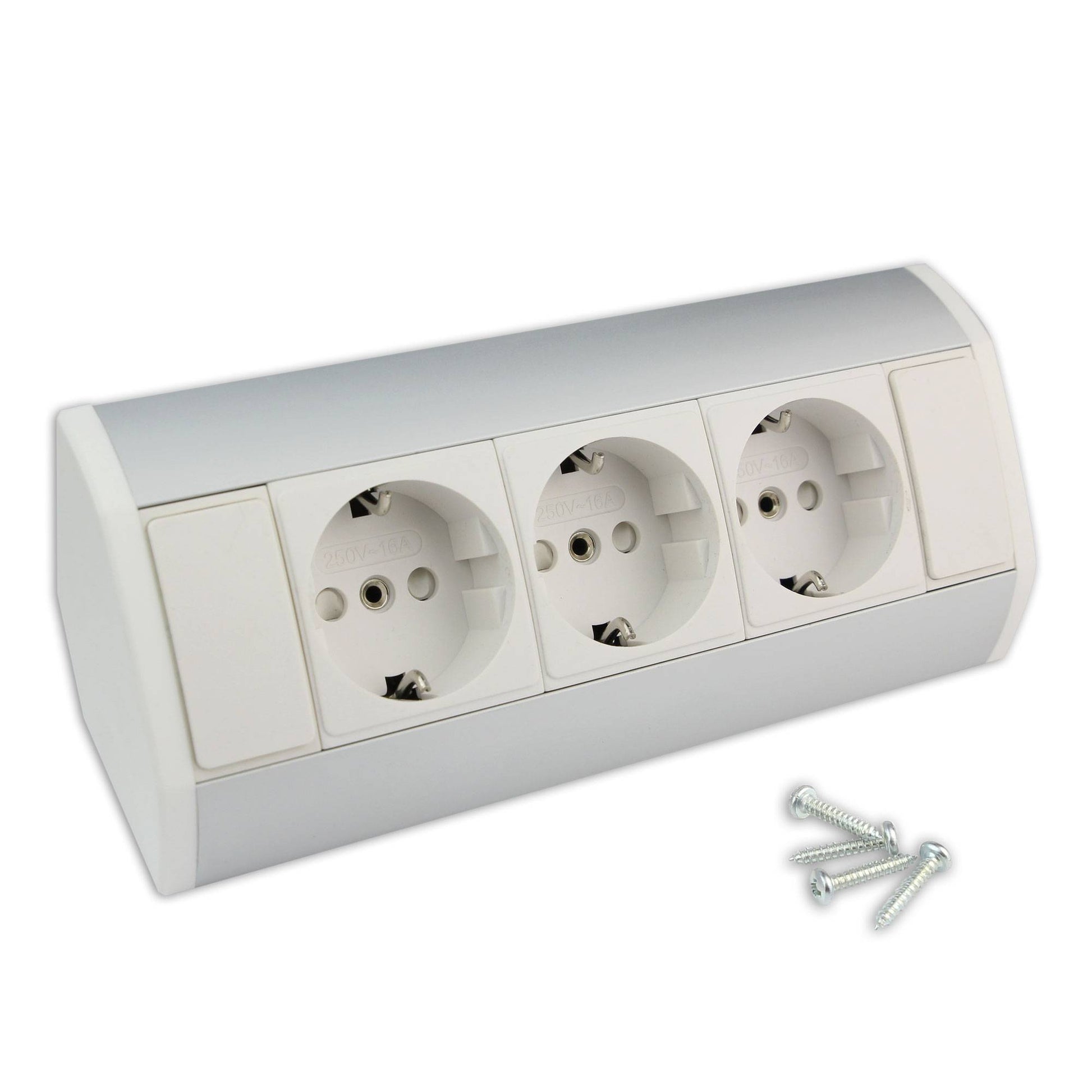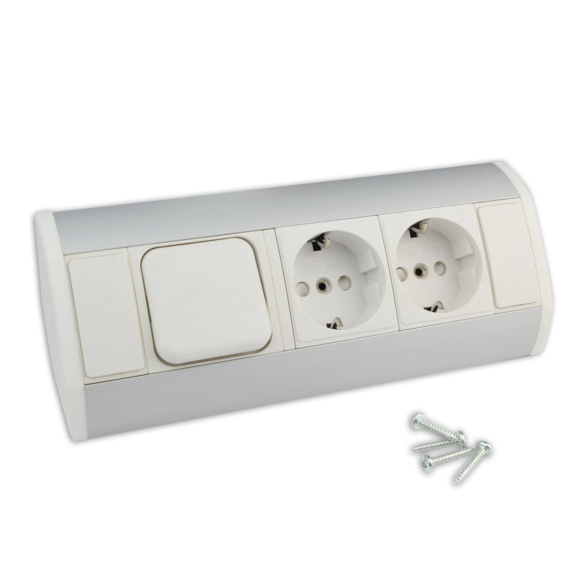 Möbel-Steckdose weiß Aluminium Schalter Tischsteckdose Küchensteckdose