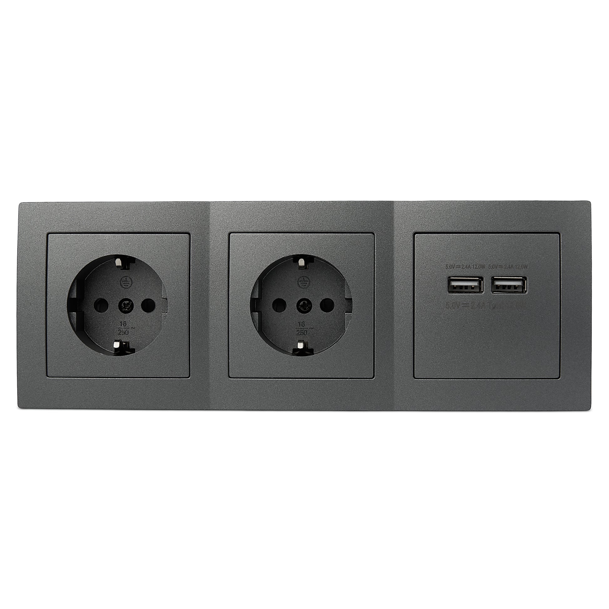 Diese 2-fach Möbelsteckdose in angesagtem Anthrazit, mit 2-fachem USB Anschluss, macht Schluss mit lästigem Kabelsalat und schafft Ordnung in Ihrem Zuhause oder Arbeitsplatz.
