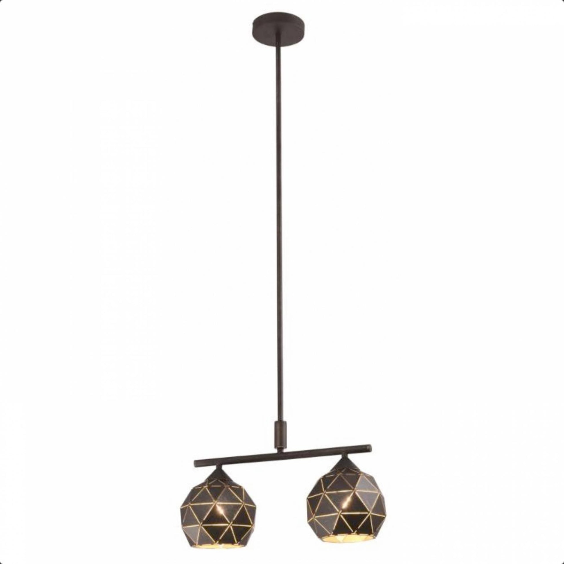 Diese Pendellampe fällt mit ihrem besonderen Design jedem auf und hinterlässt einen bleibenden Eindruck. Die Pendelleuchte verfügt über zwei kugelförmige Elemente, welche von außen mit einzelnen Dreiecken und feinen goldenen Linien verziert sind.