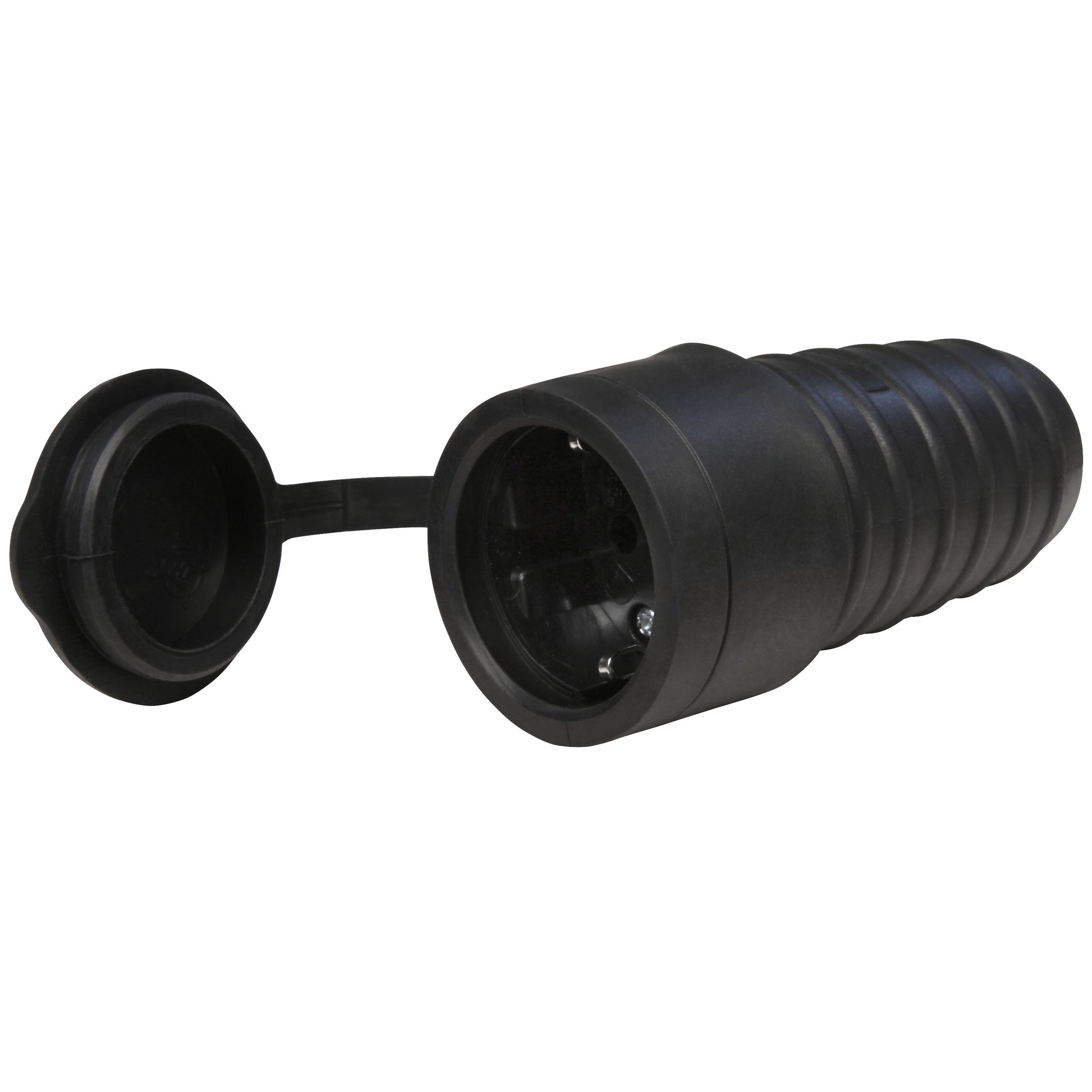 Robuster Gummi-Schutzkontaktstecker oder -Kupplung, Schwarz, Wiederanschließbar, DIN-Norm, 250V~