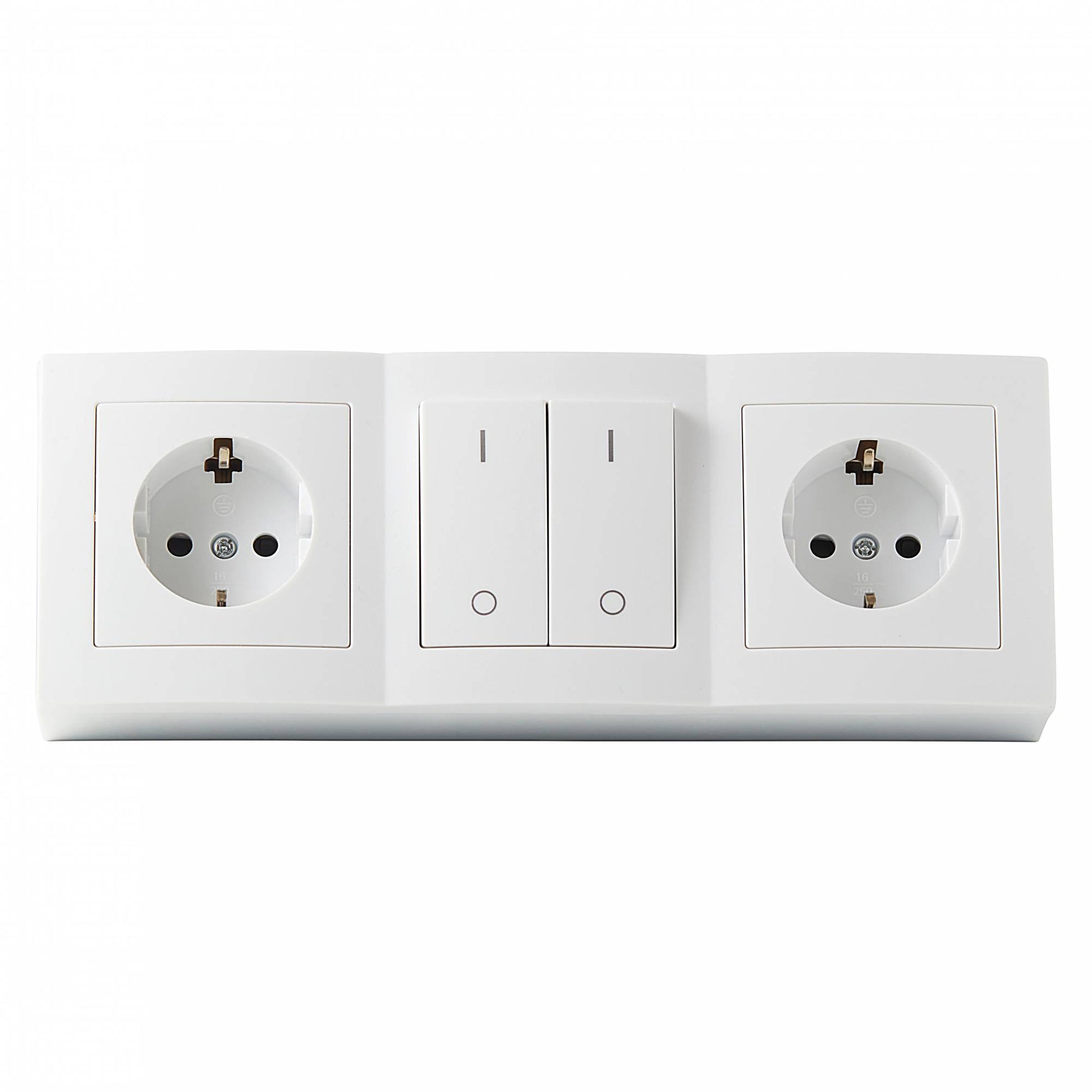 Die Schutzkontakt-Steckdose hat zwei Steckplätze, welche mit Kindersicherung ausgestattet sind. Zu jedem Steckplatz gehört ein Schalter und ermöglicht somit ein voneinander unabhängiges Ein- bzw. Ausschalten des Steckplatzes.