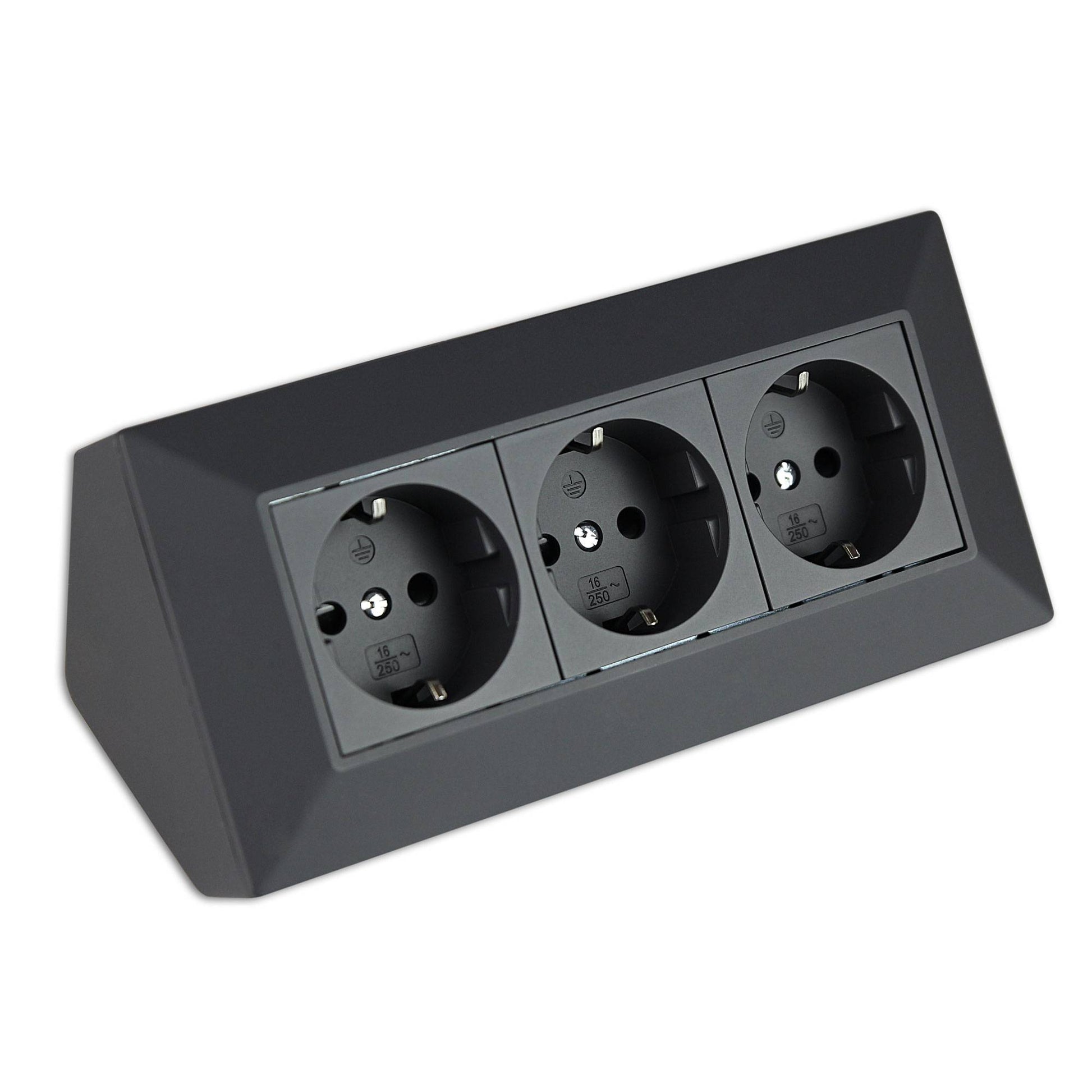 Steckdose Küche Büro 3-fach Kunststoff Ecksteckdose Tischsteckdose