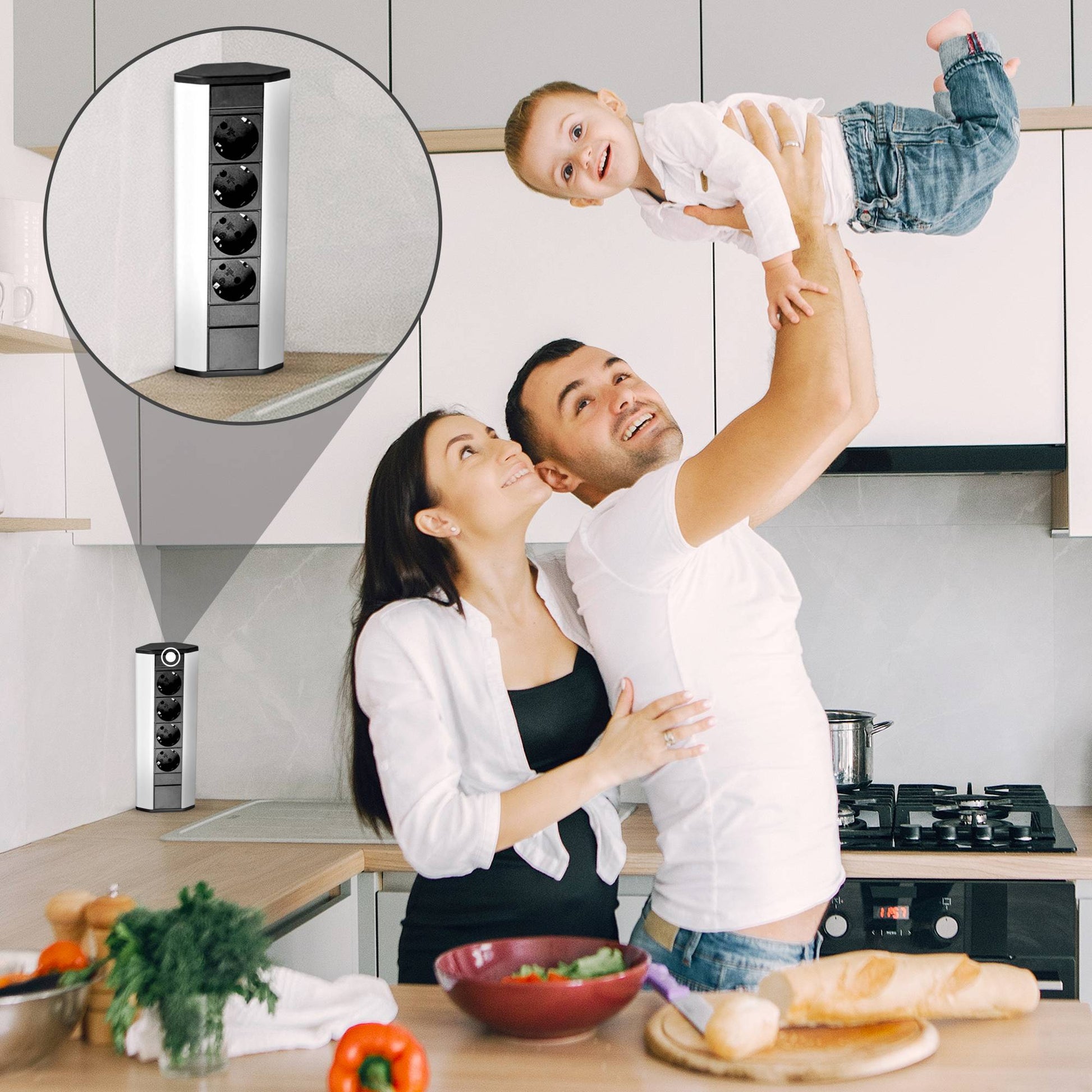 Steckdose versenkbar Küche Büro Tischsteckdose 3-fach Mehrfachsteckdose