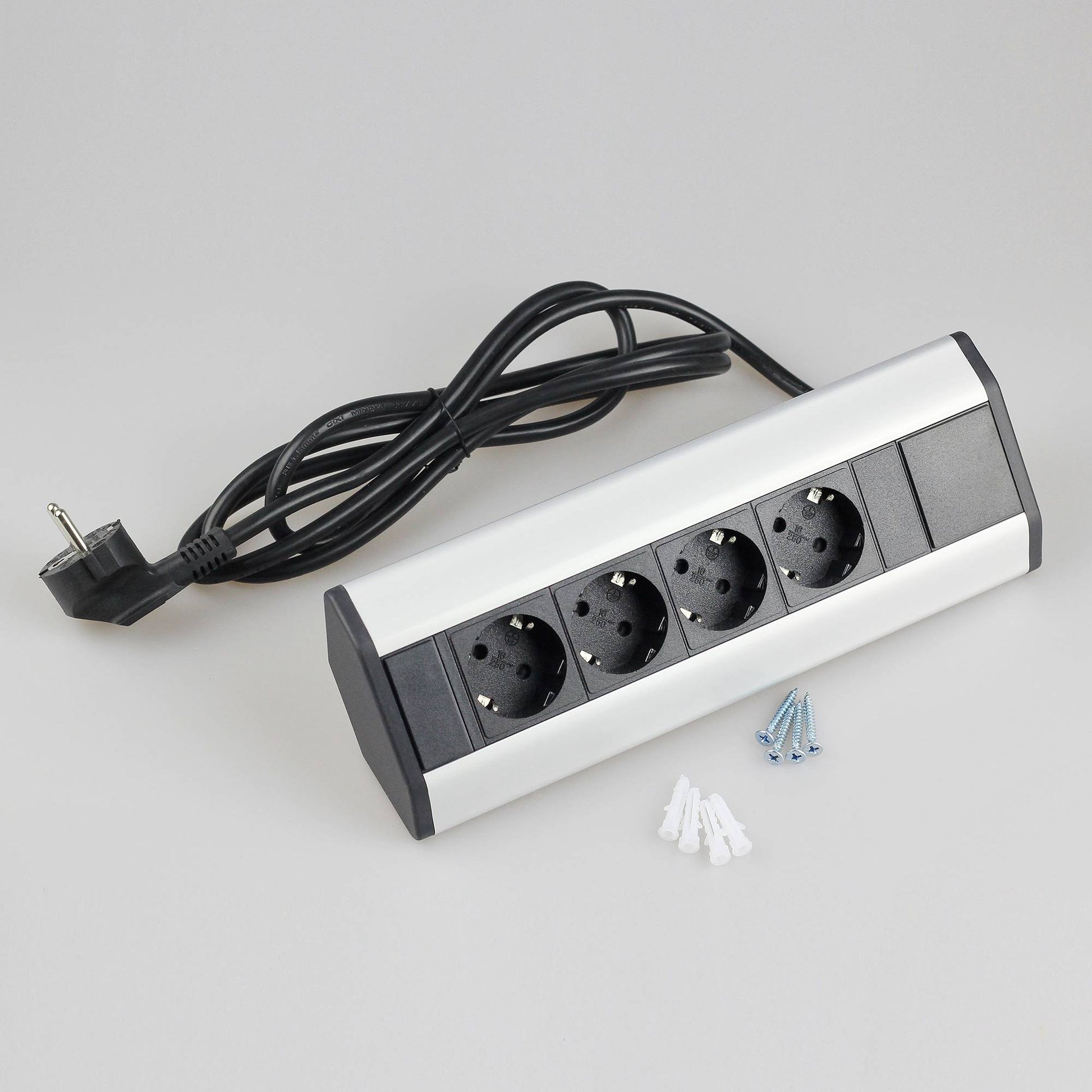Die praktische Einbausteckdose schafft Ordnung und beinhaltet mehrere Steckdosenelemente mit Schutzkontakt. Durch die mitgelieferten Halterungen kann die Steckdose fest am Schreibtisch befestigt werden. Bohren oder Kleben ist nicht notwendig, diese Steckdose kann jeden Moment spurlos vom Tisch entfernt werden.
