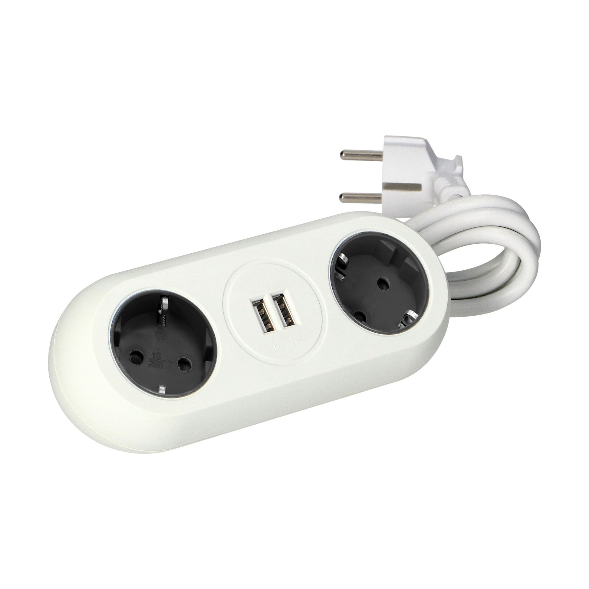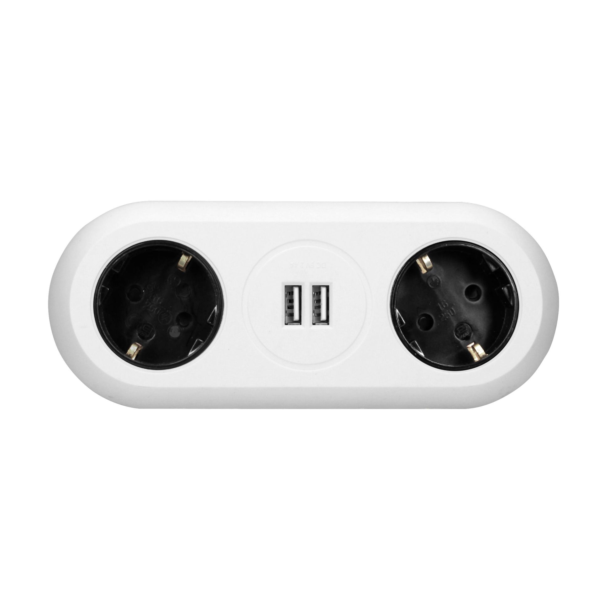 Tisch-Steckdose 2-fach 2x USB weiß Küche Büro Steckdosenleiste Schreibtisch