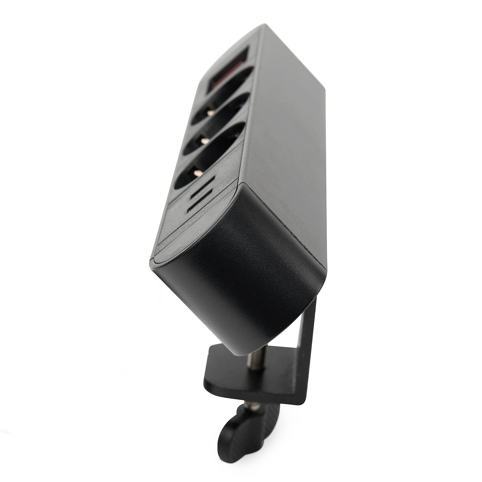Tisch-Steckdose schwarz 3-fach 2x USB Schalter Mehrfachsteckdose Büro 2m Kabel