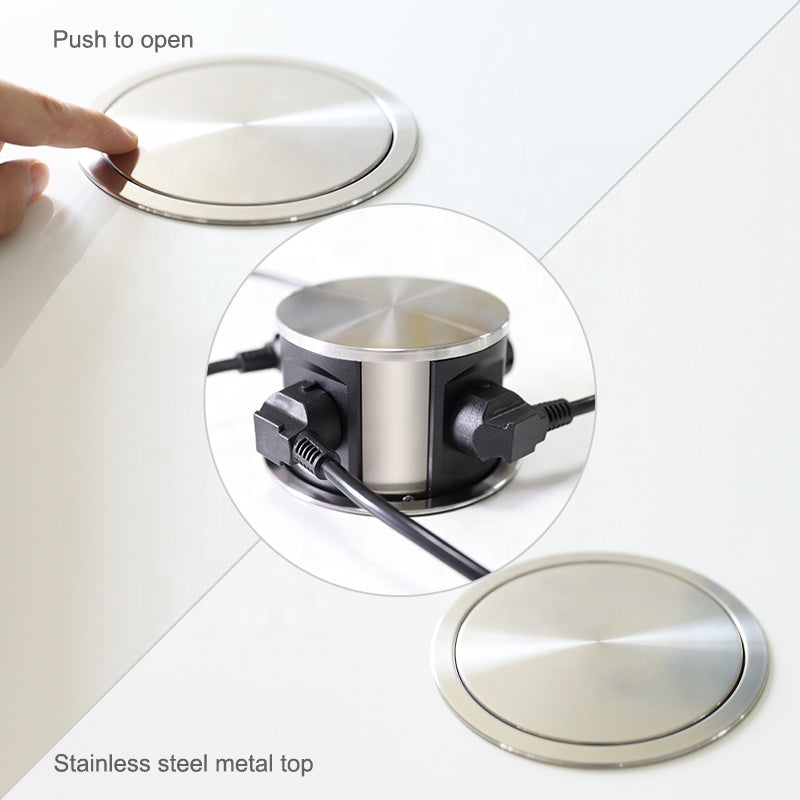 Tischsteckdose 3-fach mit USB rund Küche Büro Pop-Up-Einbausteckdose versenkbar