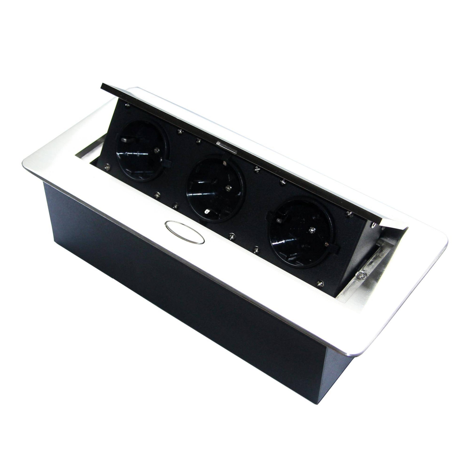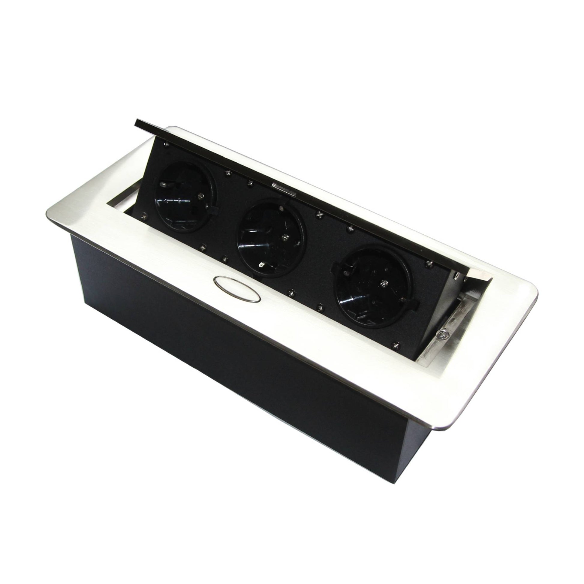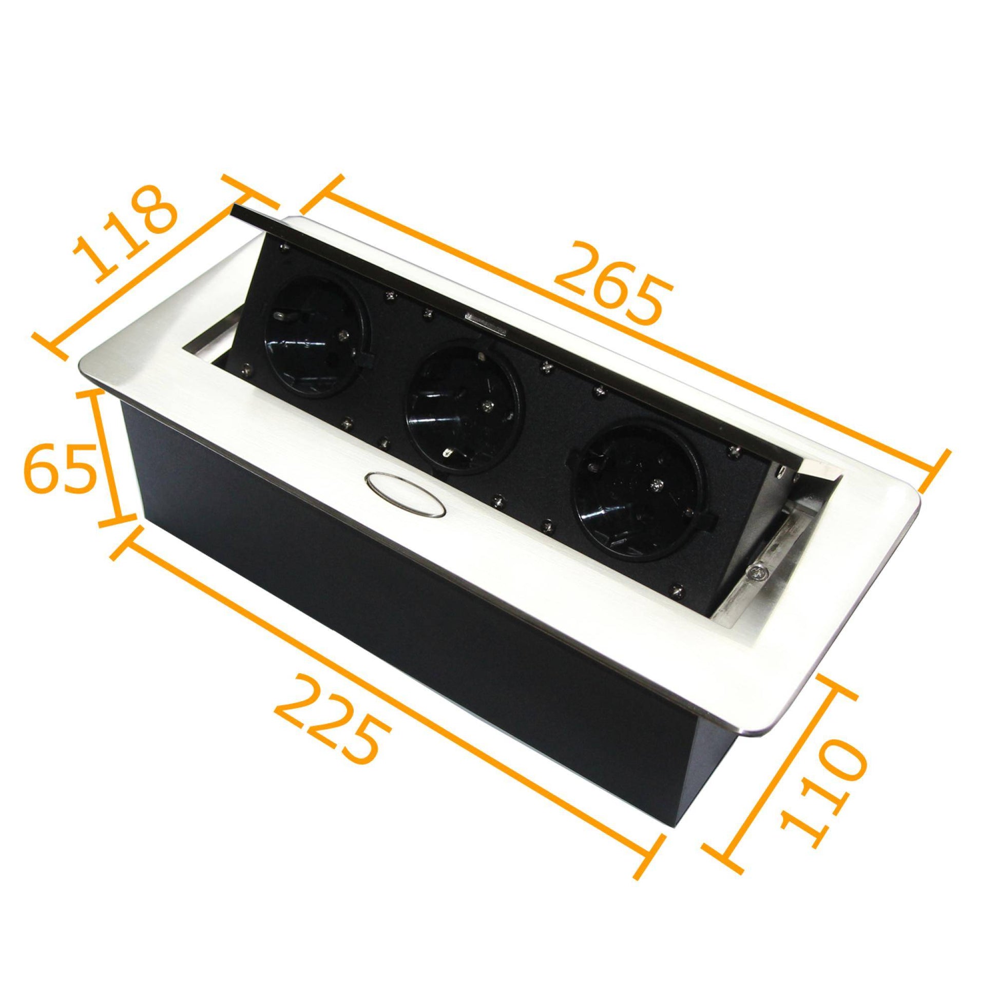 Tischsteckdose 3er Aluminium Steckdose Küchensteckdose Steckdosenelement