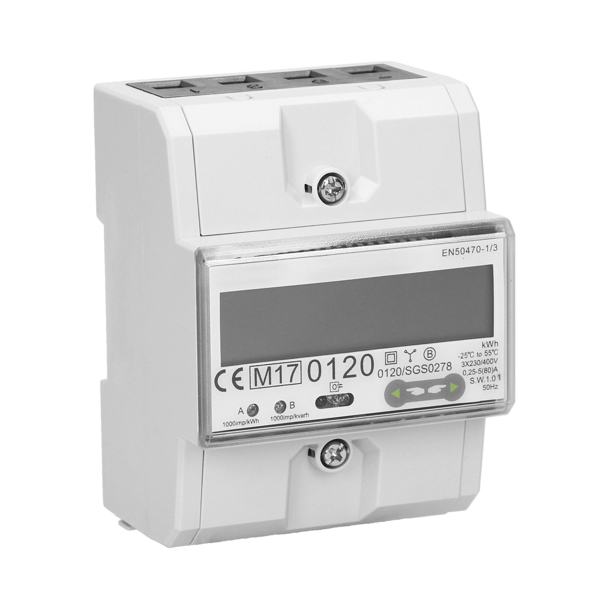 Trano 3-Phasen Energiezähler RS-485 Modbus | 80A MID zertifiziert | 4,5 Module DIN TH-35mm | LCD 6+2 | IP51 | 1000 imp/kWh