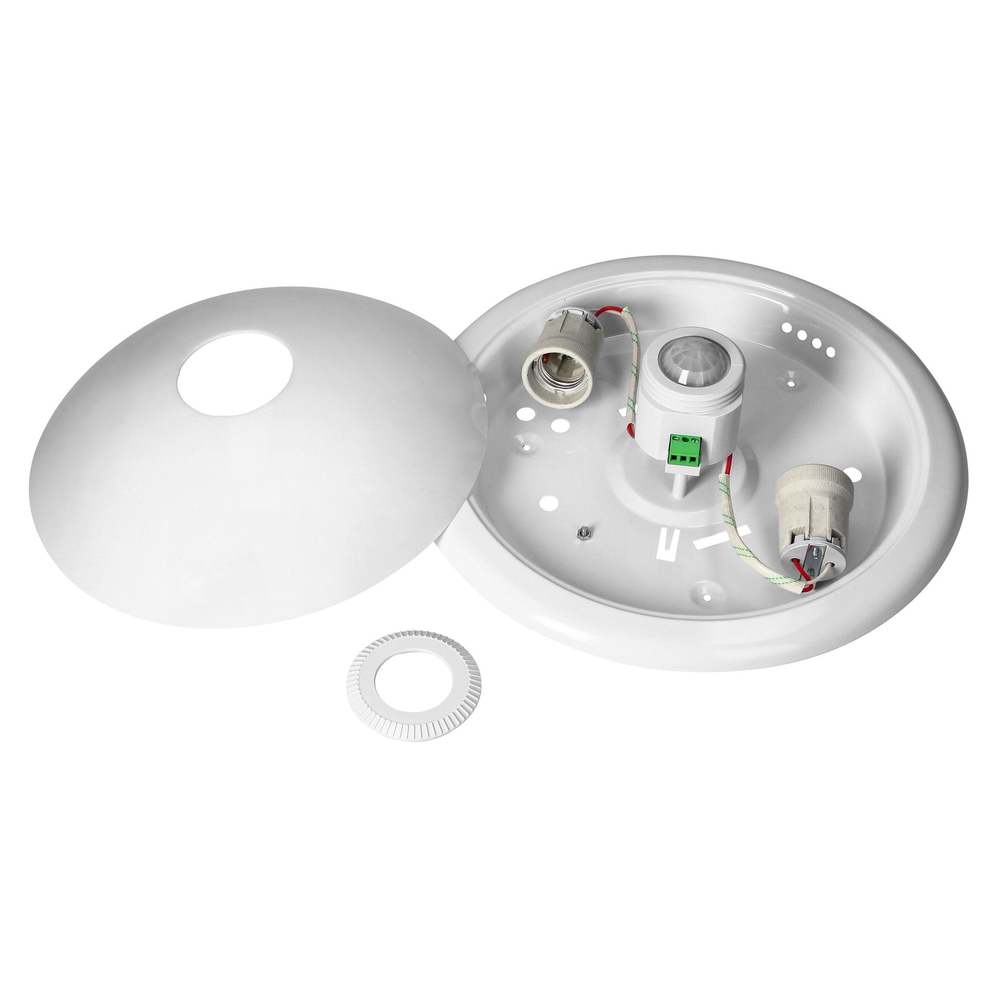 Trano Deckenleuchte mit 360° Bewegungsmelder, 2x18W E27, IP20, Ø300mm, Polycarbonat, PIR Sensor, für Flur Keller Garage