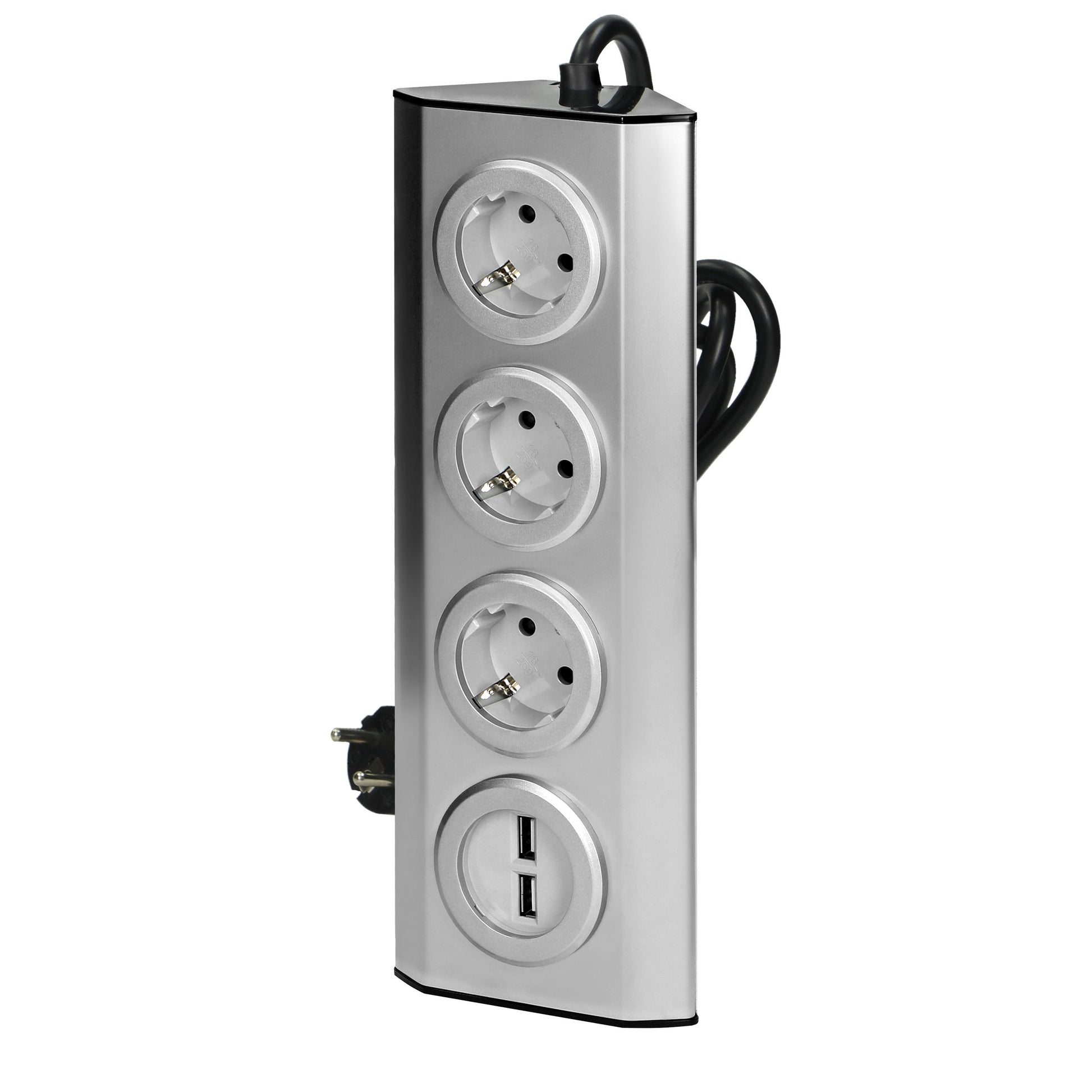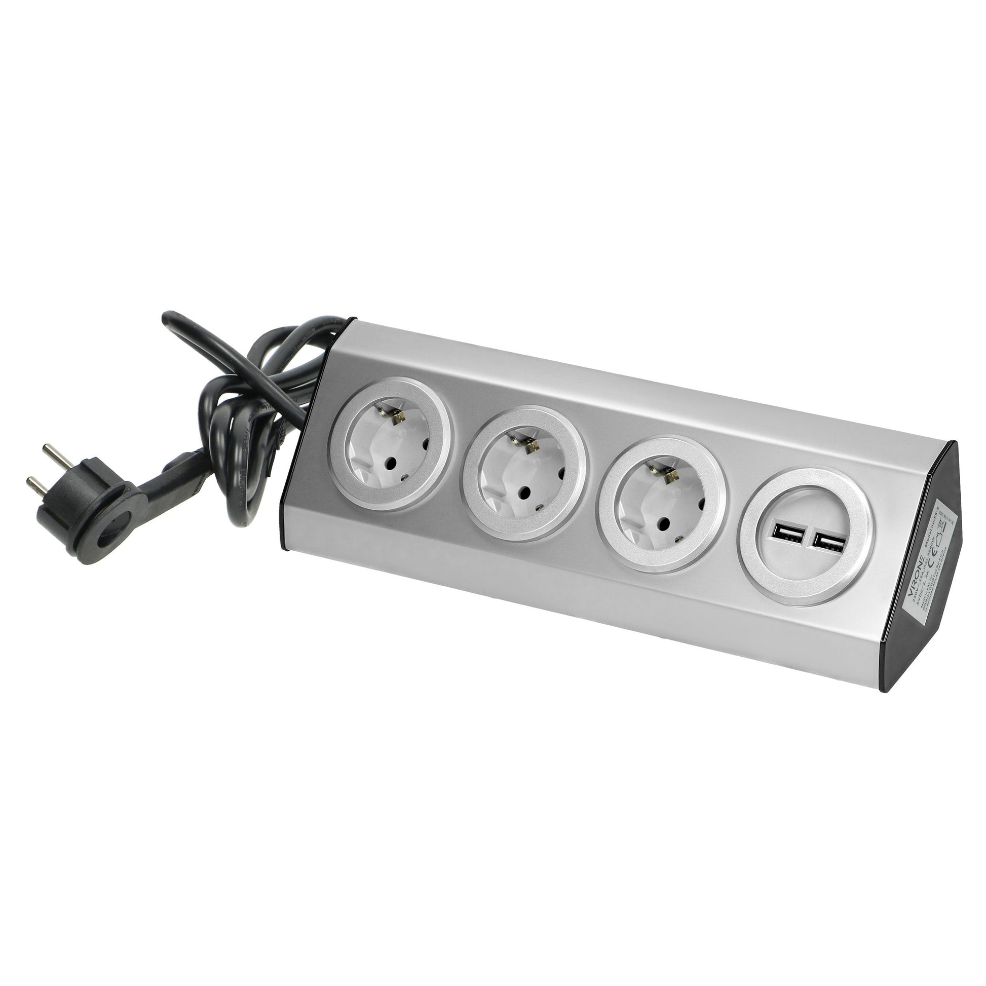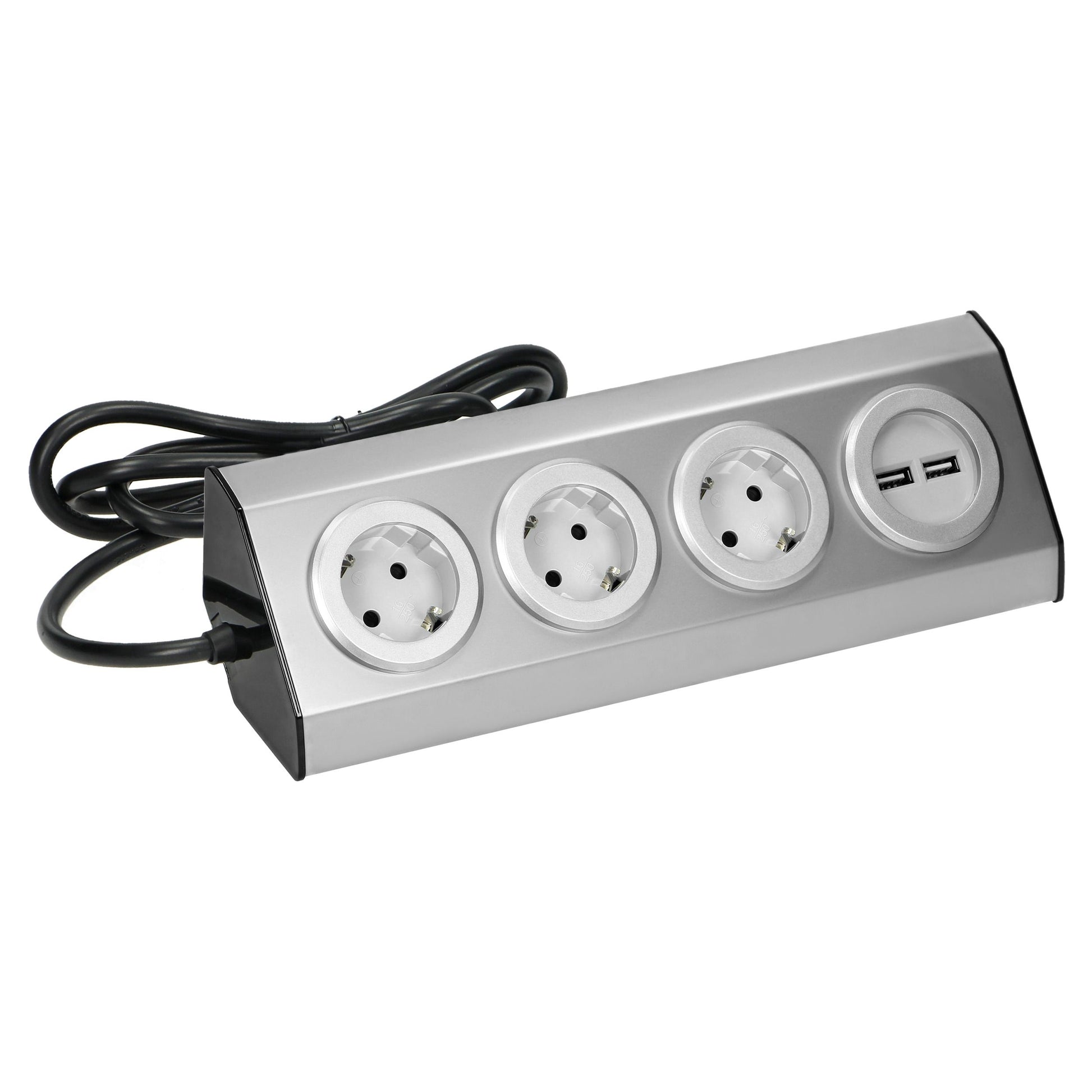 Die hochwertige Ecksteckdose 3-Fach mit 2 USB Anschlüssen ist die ideale Lösung für Küche, Büro und Arbeitsplatte. Dank der praktischen 45°-Montage lässt sich die Steckdosenleiste platzsparend und ergonomisch einsetzen.