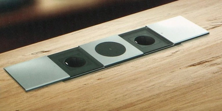 Mit IP20 Schutzklasse, robuster Verarbeitung und edlem Silber-Finish ist diese Möbelsteckdose die ideale Lösung für moderne Arbeits- und Wohnbereiche.