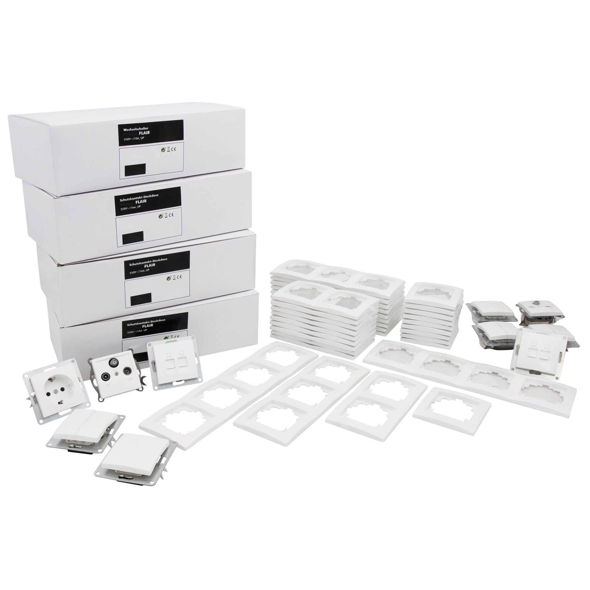 TRANO Flair Megaset - 100-teiliges Schalter- und Steckdosen-Set, reinweiß