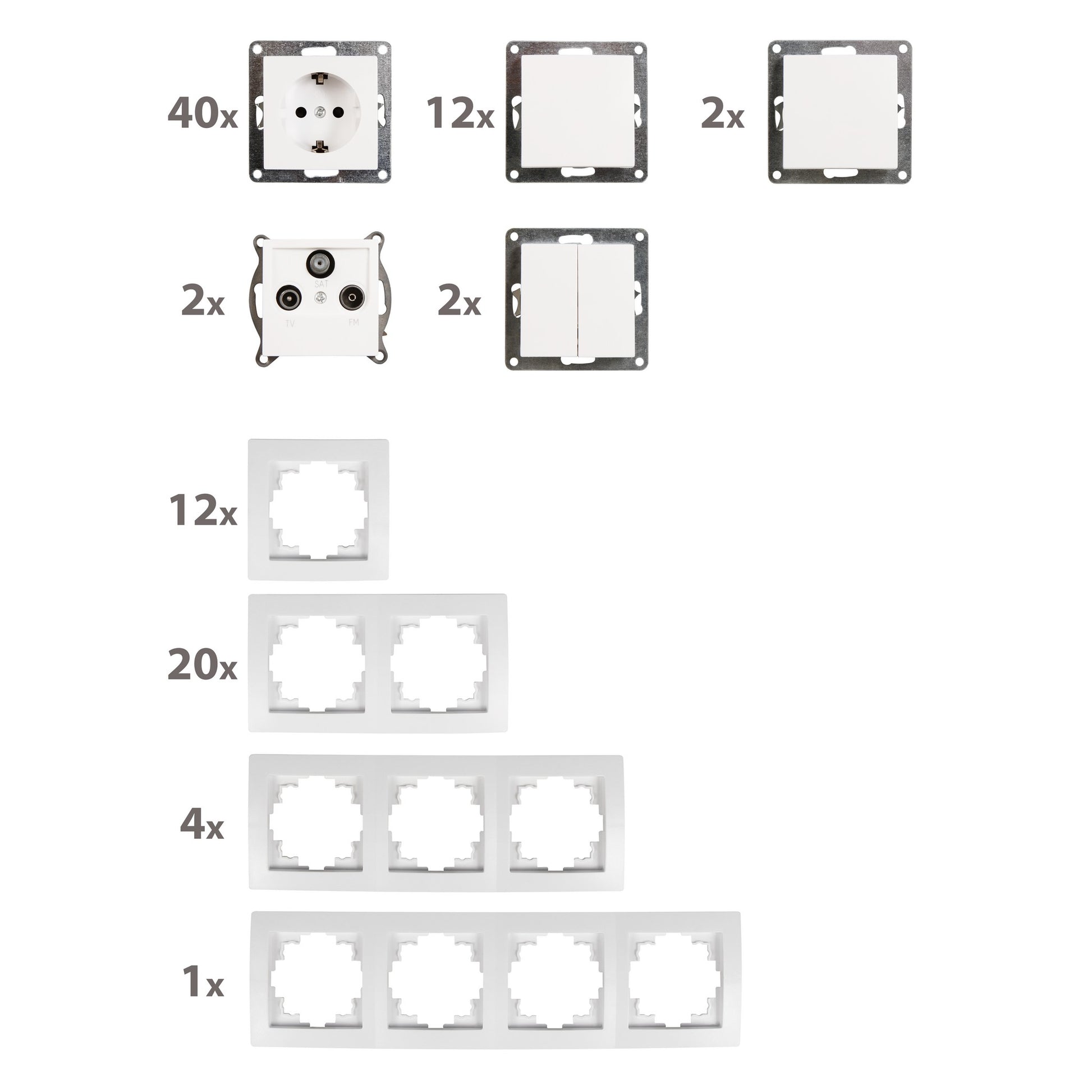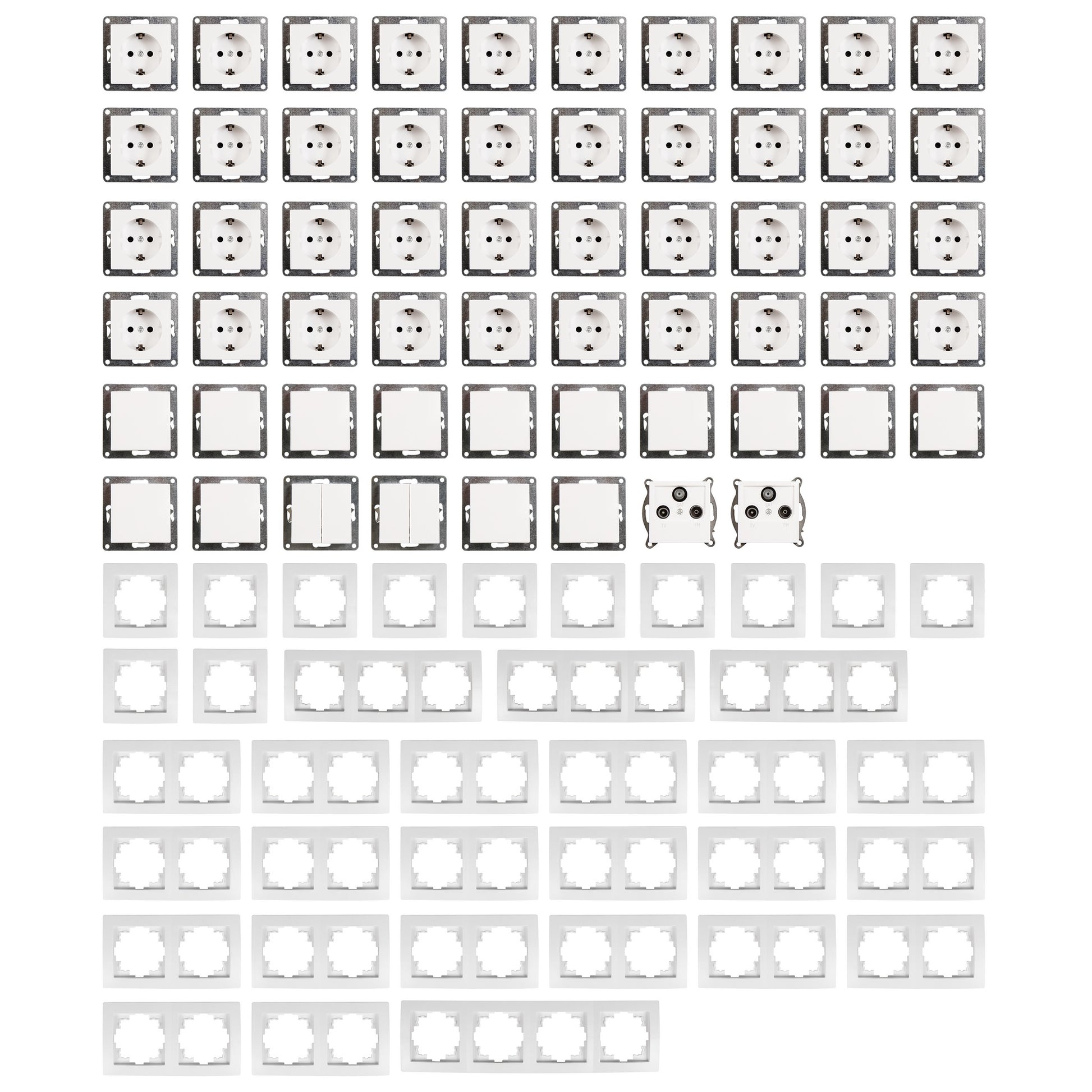 Trano Flair Schalter und Steckdosen Set für Einfamilienhaus – 95-teiliges Komplettset in Weiß – Modernes Design & Hochwertige Verarbeitung