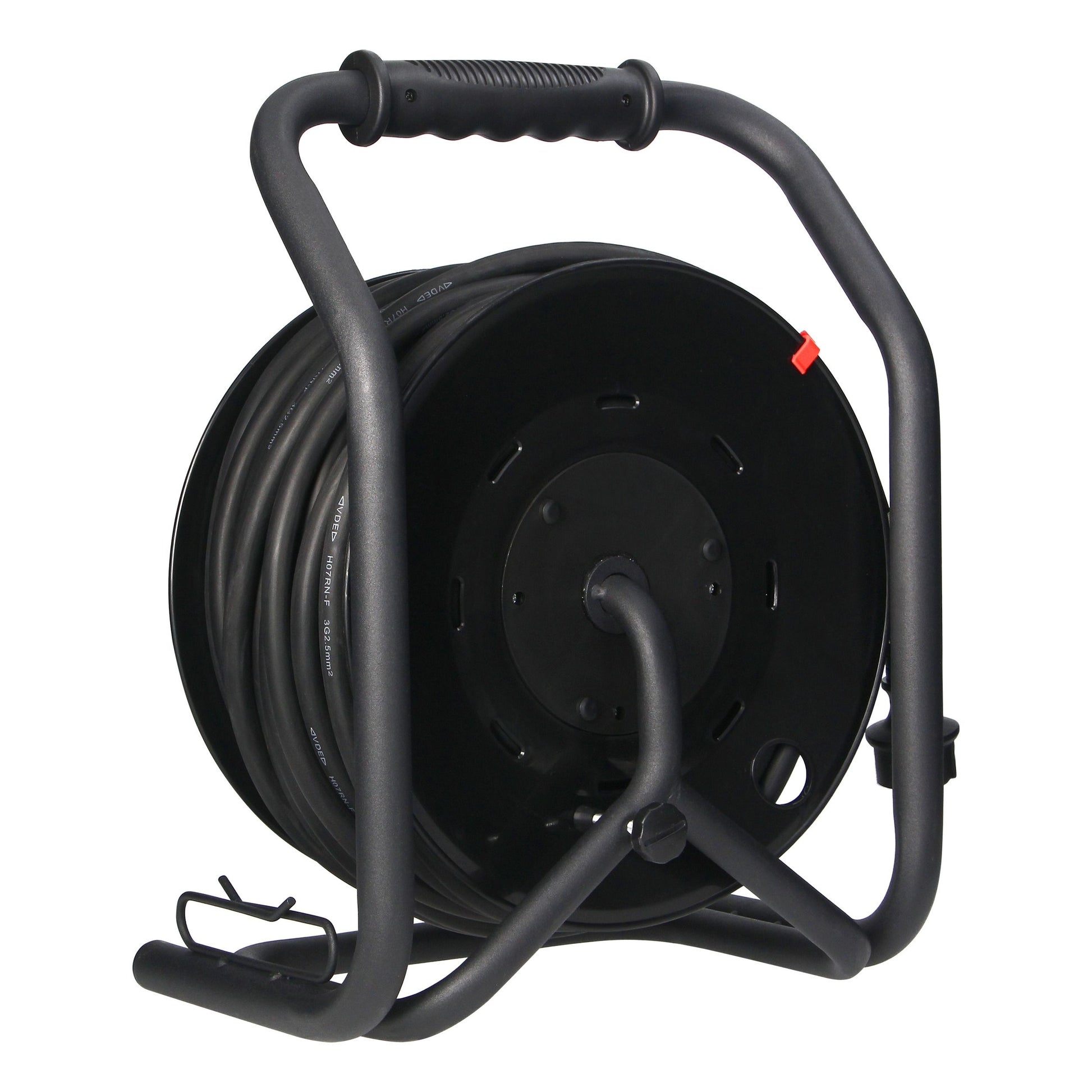 Die stabile Metall-CUBE-Halterung mit ergonomischem Gummigriff sorgt für komfortablen Transport und sicheren Stand. Zusätzliche Features wie Trommelarretierung und Kabelaufwicklungshilfe erleichtern die Handhabung im Alltag.