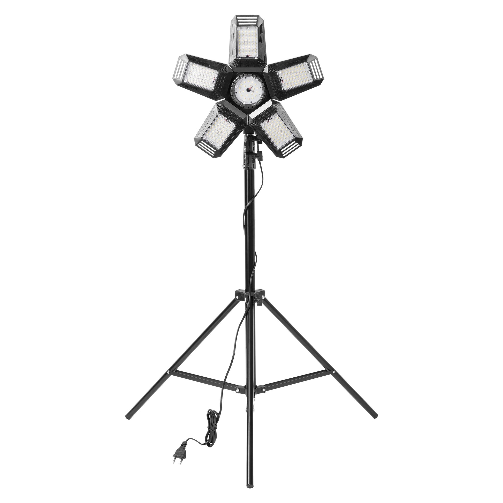 Trano LED Baustrahler Set 55W – 4950lm, 6500K, klappbar mit 5 Flügeln, höhenverstellbares Stativ 68–210cm, E27, IP20, 2m Kabel