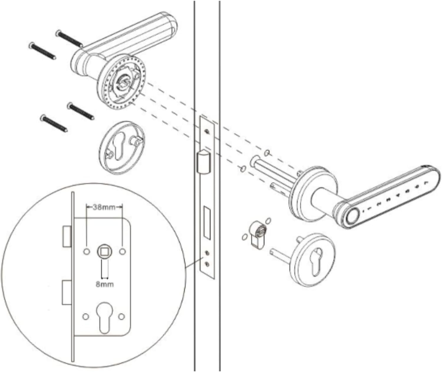 Trano Smarter Türgriff mit Touch-Tastatur & Fingerabdruckleser, Bluetooth 4.0, Zink, schwarz/silber, für Türen 38–56 mm, IP20